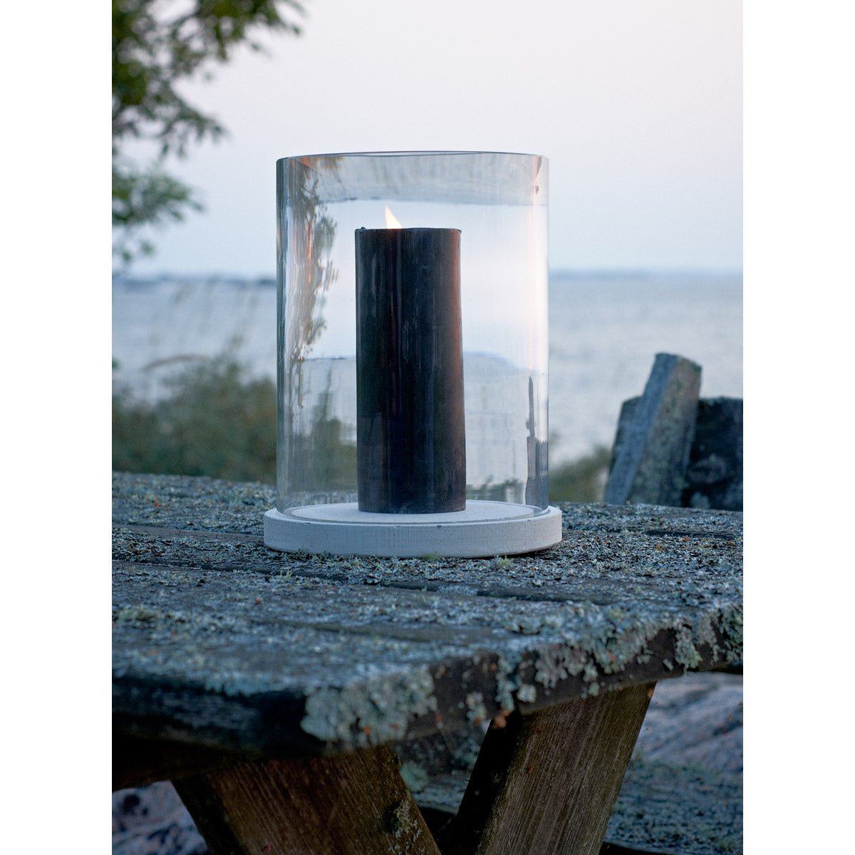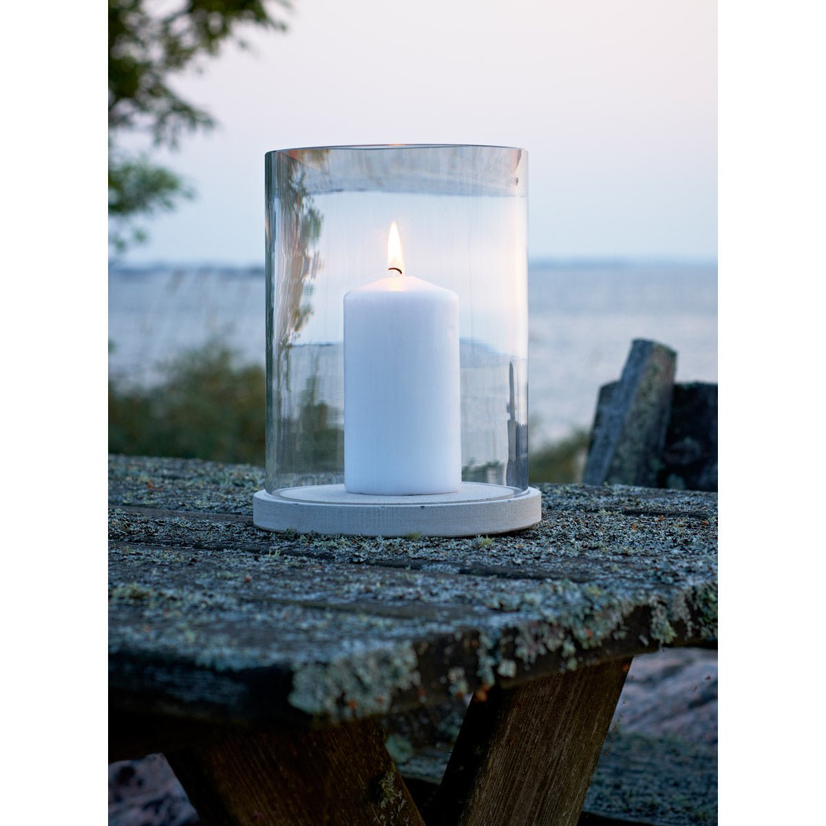 Made in Sweden by Reijmyre Glassworks, the Skagaarden Moja Candle Lantern reflects generations of expert craftsmanship. The concrete base offers durability, while the glass captures and diffuses candlelight beautifully. Use it as a subtle accent alongside modern lighting, or pair it with champagne glasses, a carafe, and a round coffee table to elevate any gathering.
