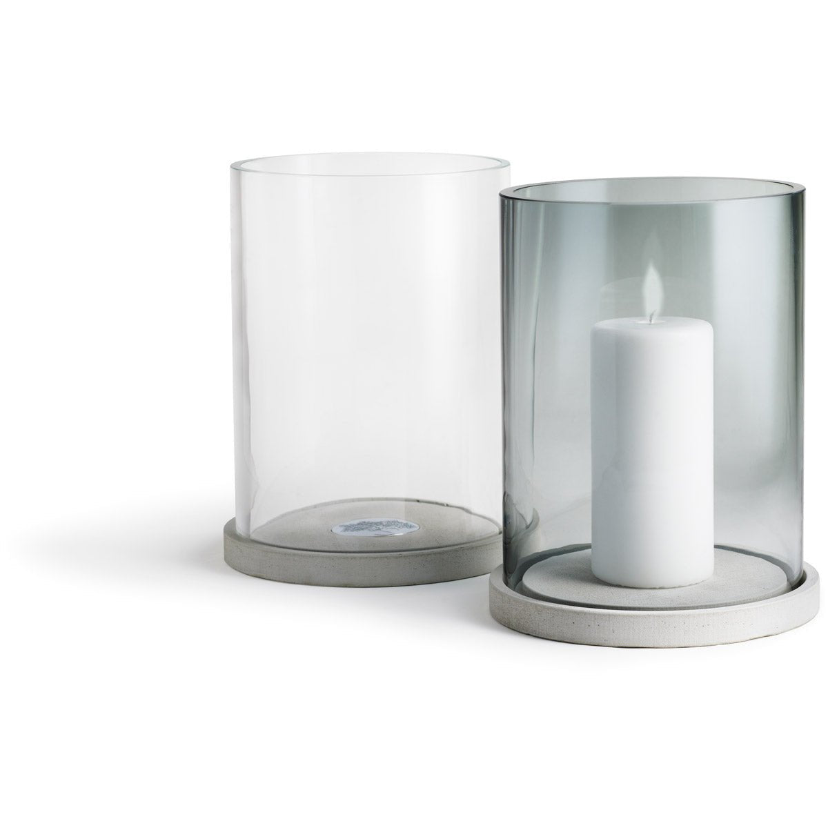 Bring soft, sculptural light to any space with the Skagaarden Moja Candle Lantern. Designed with hand-blown glass and a weighty concrete base, it blends natural textures with modern form. The Moja Candle Lantern creates a calming atmosphere—whether beside a lounge chair, styled on a media console, or placed outdoors for evening ambiance. Choose clear or smoked glass to suit your space.