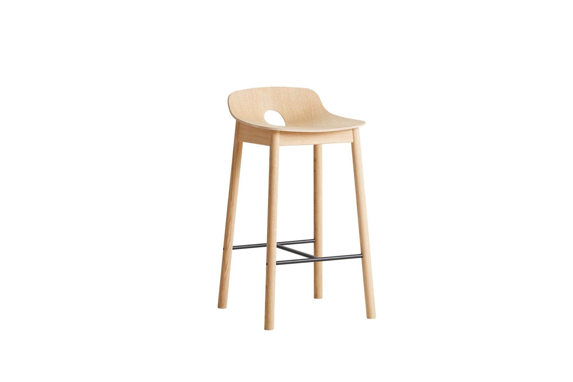 Mono counter chair is finished in white pigmented lacquered oak, reinforcing Woud’s commitment to honest materials, quiet detailing, and timeless Nordic craftsmanship.