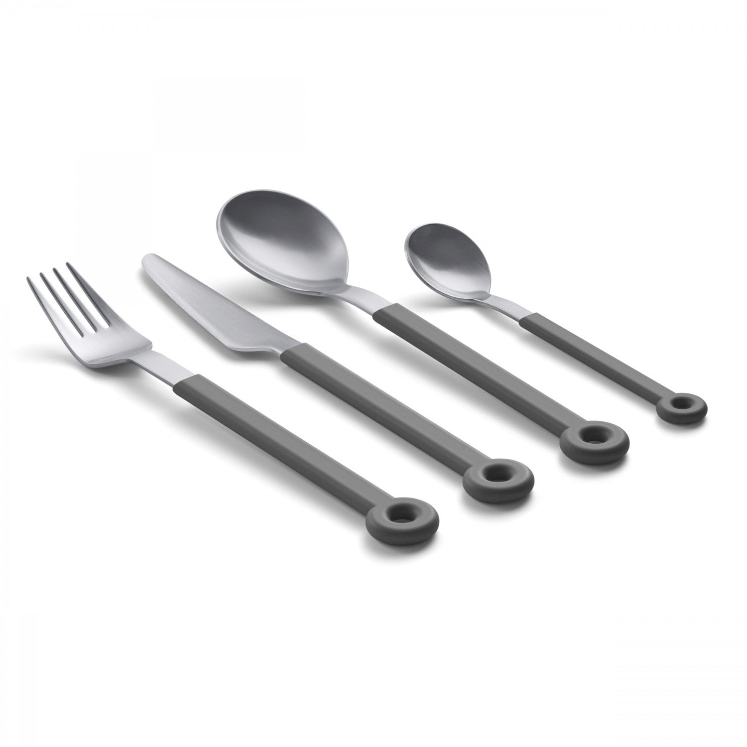 Moreover, the Mono Ring 24 +1 Cutlery Set is not just a flatware set; it’s a true design statement. Featuring a sleek gray finish and a practical stand, this set adds both elegance and convenience to any table. The cross-shaped rack allows diners to serve themselves effortlessly, breaking away from the constraints of formal dining. As a result, this cutlery set becomes an ideal choice for modern settings, offering a perfect balance of style and functionality for those who appreciate design innovation.