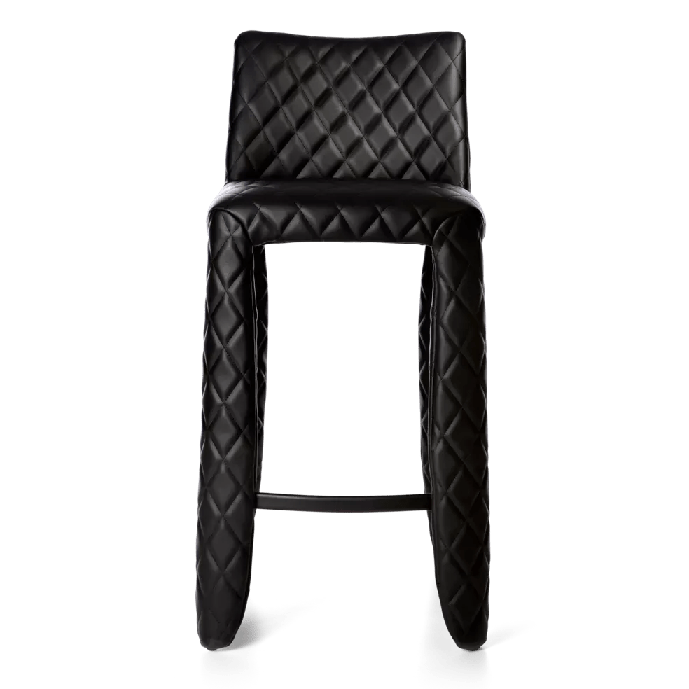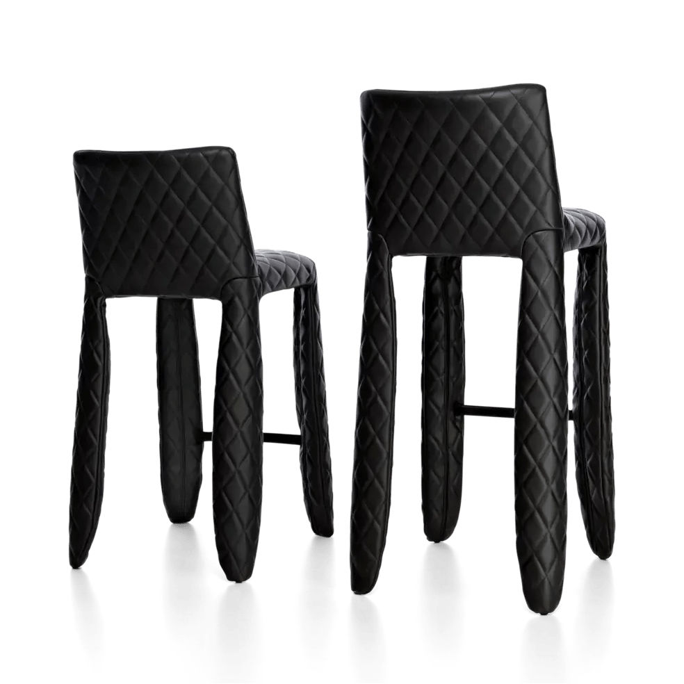 The Moooi Monster Barstool is Marcel Wanders' answer to what happens when you take the idea of something scary and turn it into something you actually want to sit on. Those impossibly long, skinny legs give it this dramatic silhouette that's part elegant, part slightly menacing - hence the "monster" name - but then the seat itself is this soft, puffy cushioned thing that completely contradicts the spindly base. The whole design plays with this tension between delicate and bold, and somehow it works in a way that makes the stool genuinely interesting to look at instead of just weird. Available in both counter and bar heights depending on your setup, and you can spec it in over 200 different fabric options ranging from classic upholstery to denim. The diamond quilted pattern on the seat adds texture without being too busy, and the overall proportions are surprisingly practical despite looking like they shouldn't be.