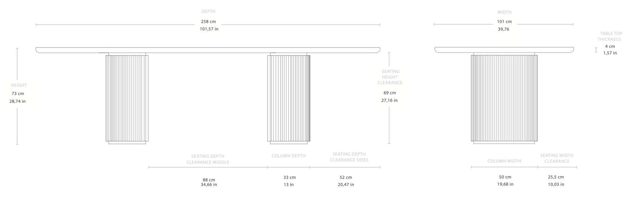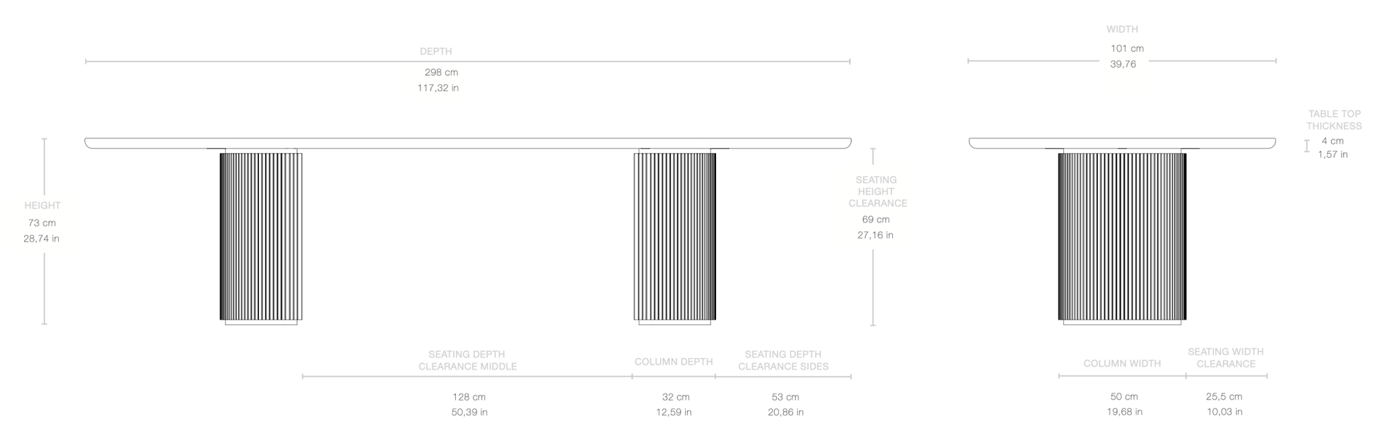 Dimensions: 118.1"L x 41.3"W x 28.7"H
