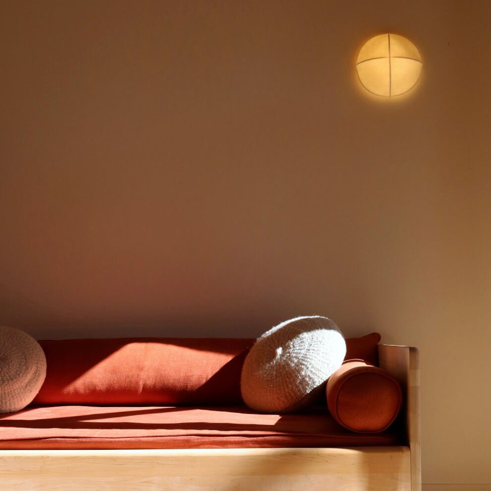 The RBW Mori Sconce uses this weird but cool resilient webbed TPU material over a wire frame that honestly looks nothing like regular wall lighting. First time you see it, you might think it's some kind of textile or mesh, but it's actually this tough synthetic stuff that won't fall apart like fabric shades do. The wire underneath shows through when it's lit up, creating these neat geometric shadows that shift around. It's one of those pieces where you notice something new about it every time you walk past - sometimes the pattern looks more prominent, other times it blends into the background.