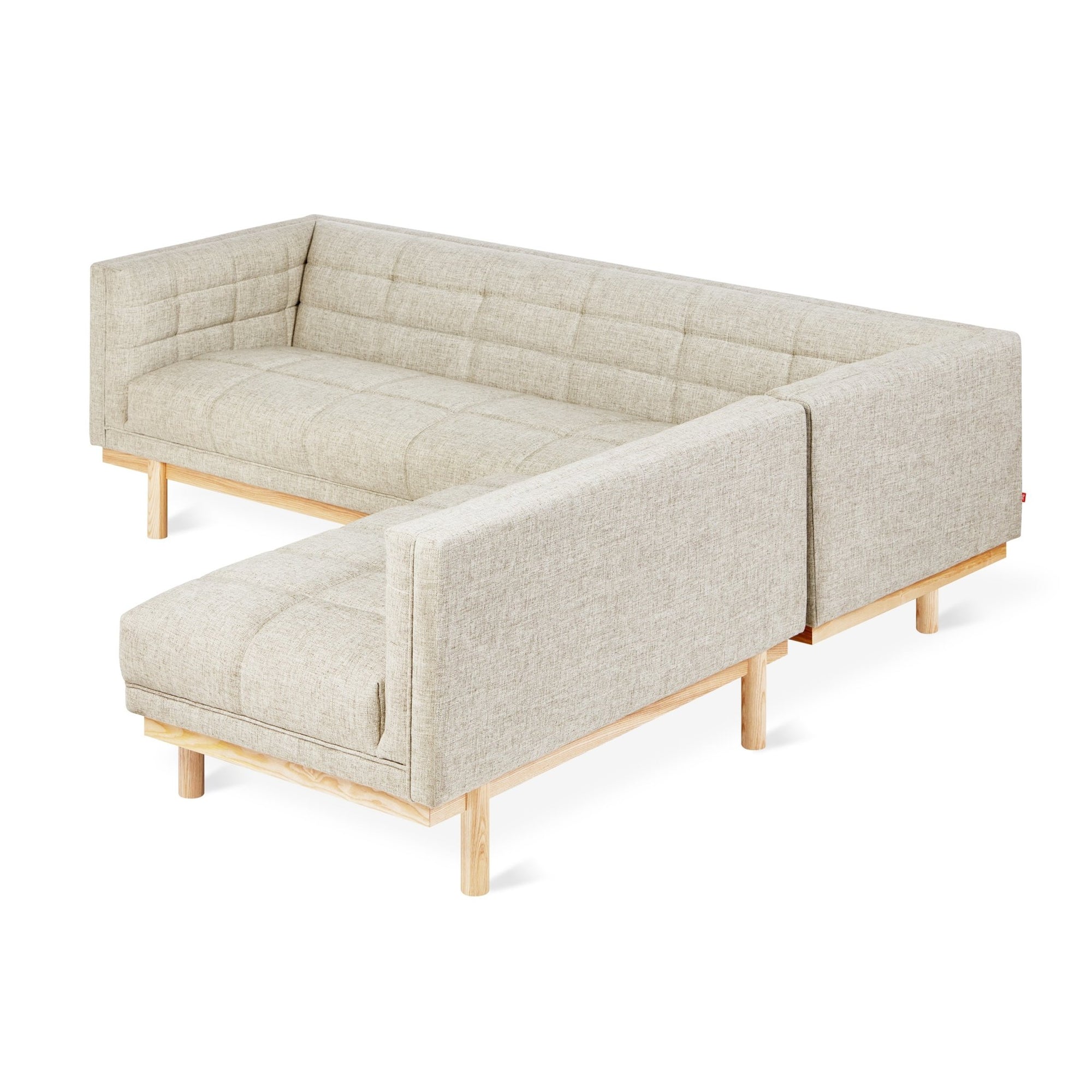 The clever and refreshing Mulholland series looks and feels friendly with a solid, in-set wood frame and rounded, deep cushions. Featuring careful and evenly tufted stitching for a unique quilted aesthetic, the Mulholland Bi-Sectional infuses gentle personality into all modern spaces. The Mulholland Bi-Sectional’s chaise module can be moved wherever it is suited best, or removed completely to sit apart from the rest of the unit as separate seating. Pair the Mulholland Bi-Sectional sofa with the Mulholland Chair and the Porter Square Coffee Table for a complete, contemporary living room set.