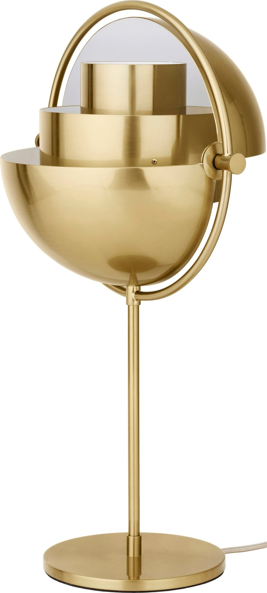 Constructed from two sets of metal, spherical, multi-level shades that mirror each other to cast light both up and down, this seemingly complicated design has an innate simplicity. Styled like a split globe, with distinctive Art Deco aesthetics, the Multi-Lite Table Lamp is an exemplary piece of asymmetric art. The modern table light’s round shape, brass and chrome finishes, and almost other-worldly presence offer refreshing elegance to all living spaces.