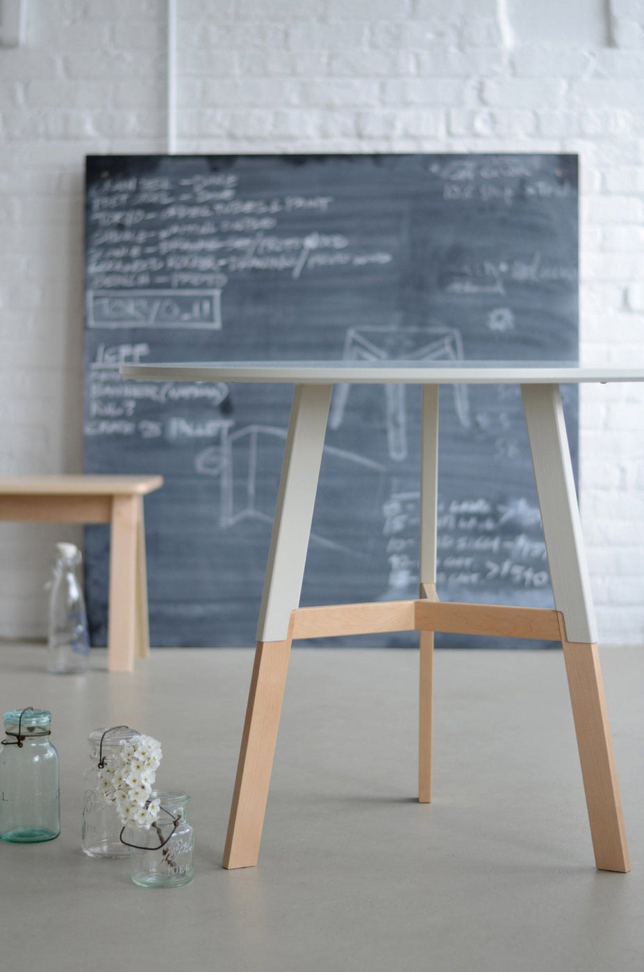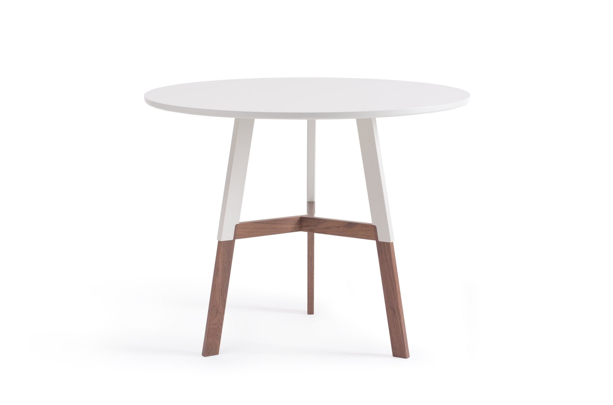 A unique pinwheel joint stabilizes the two-toned legs of the delicately charming 1/2 Nelson Café Table. Blending natural wood finish with eco-friendly powder-coating, the Nelson Café Table is a gorgeous modern addition to coffee shop and café seating areas.