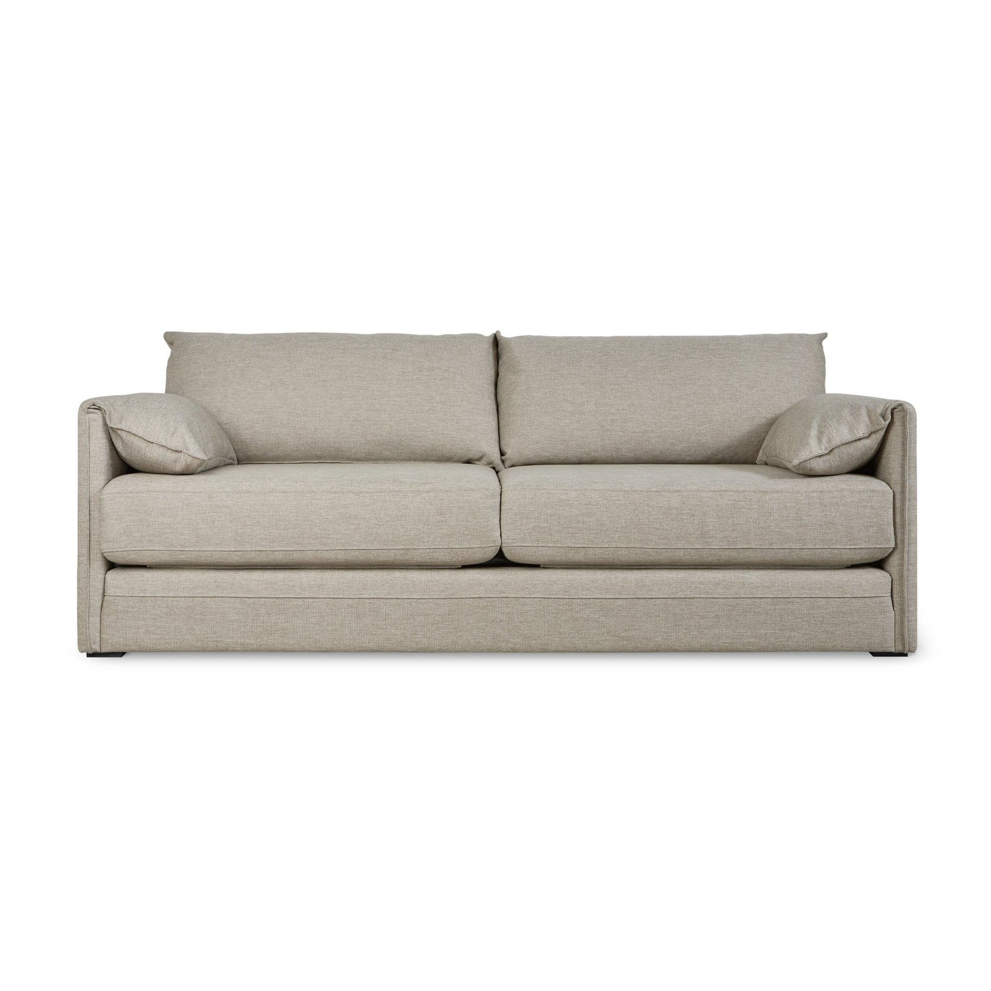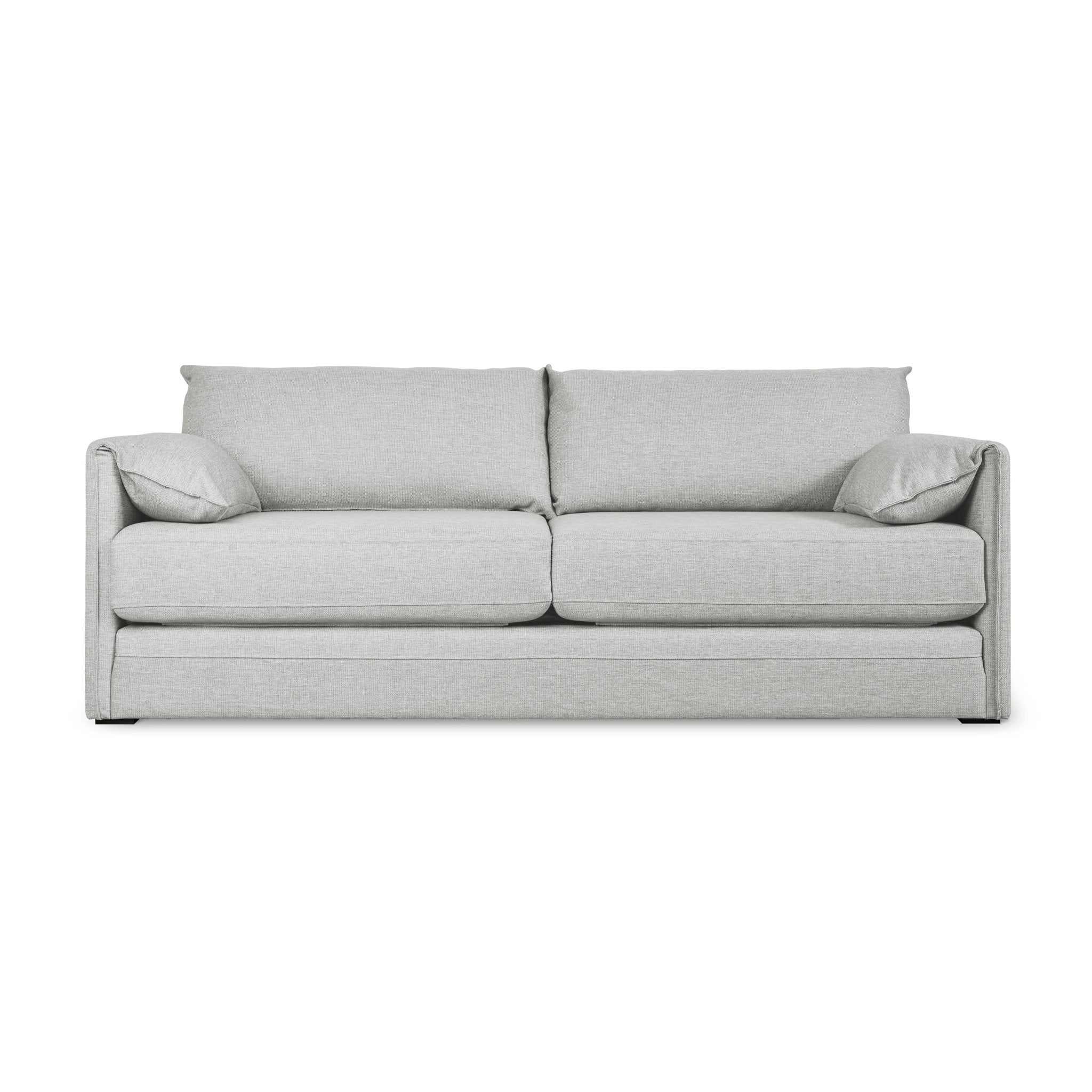 - Easy-pull fabric handles are concealed on the backside of seat cushions to allow simple conversion between sofa and bed.