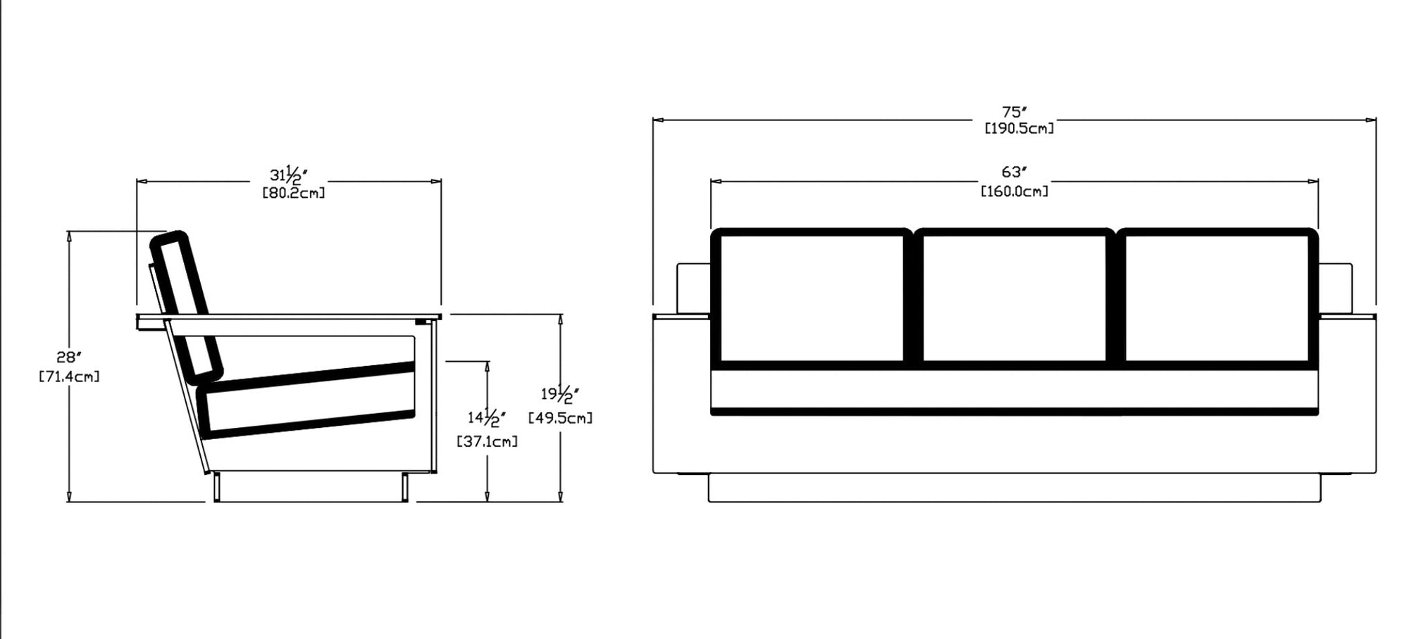 - 75"W x 31.5"D x 28"H