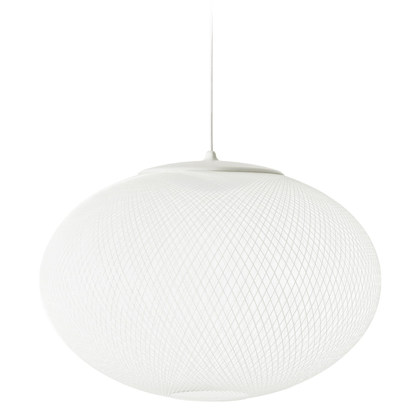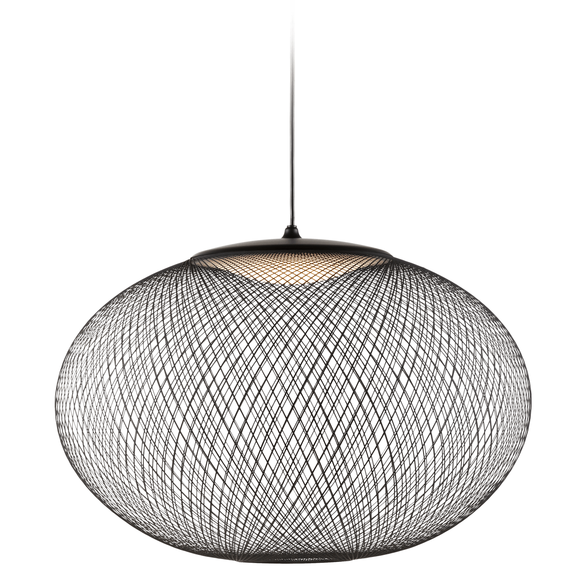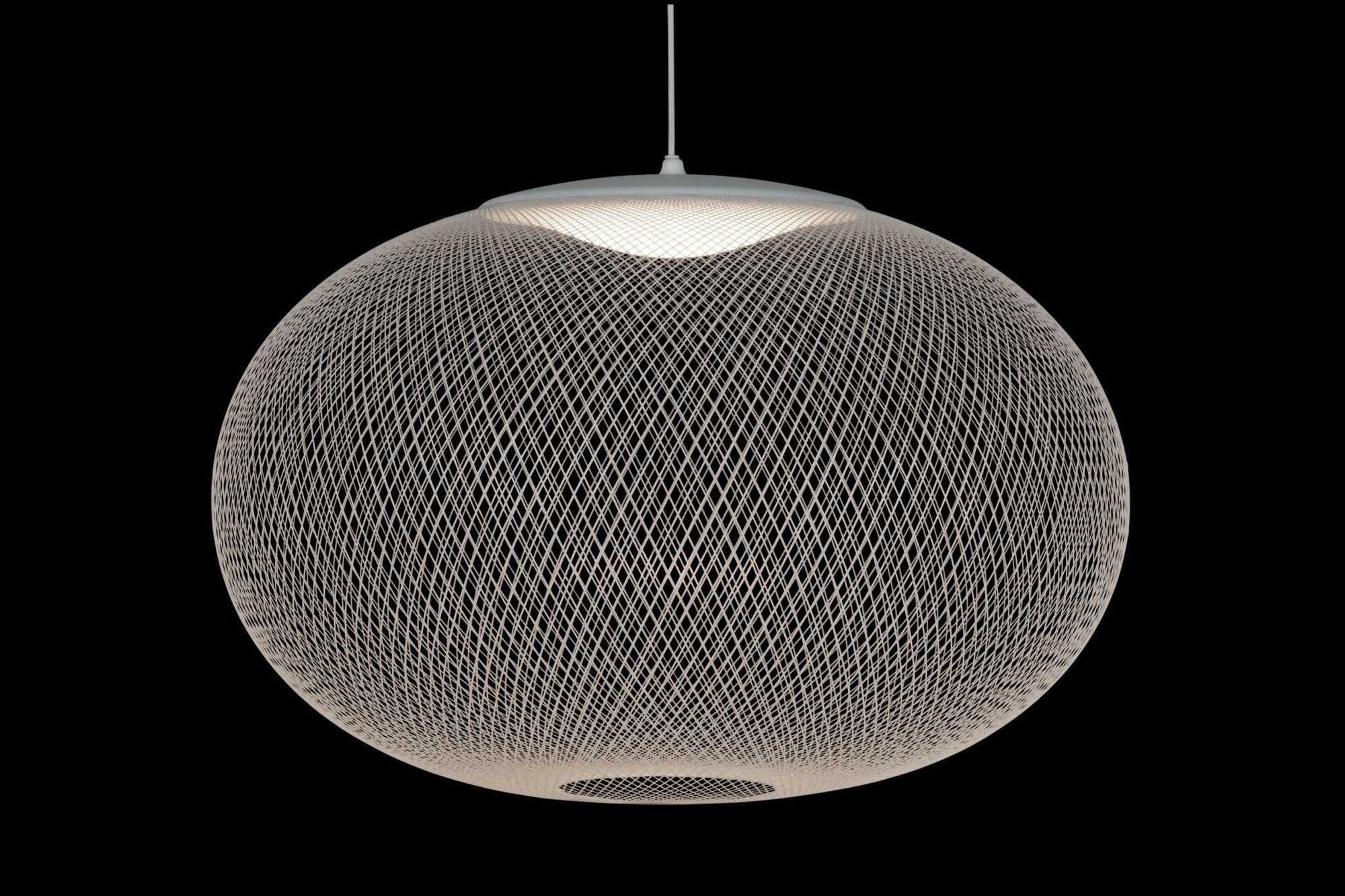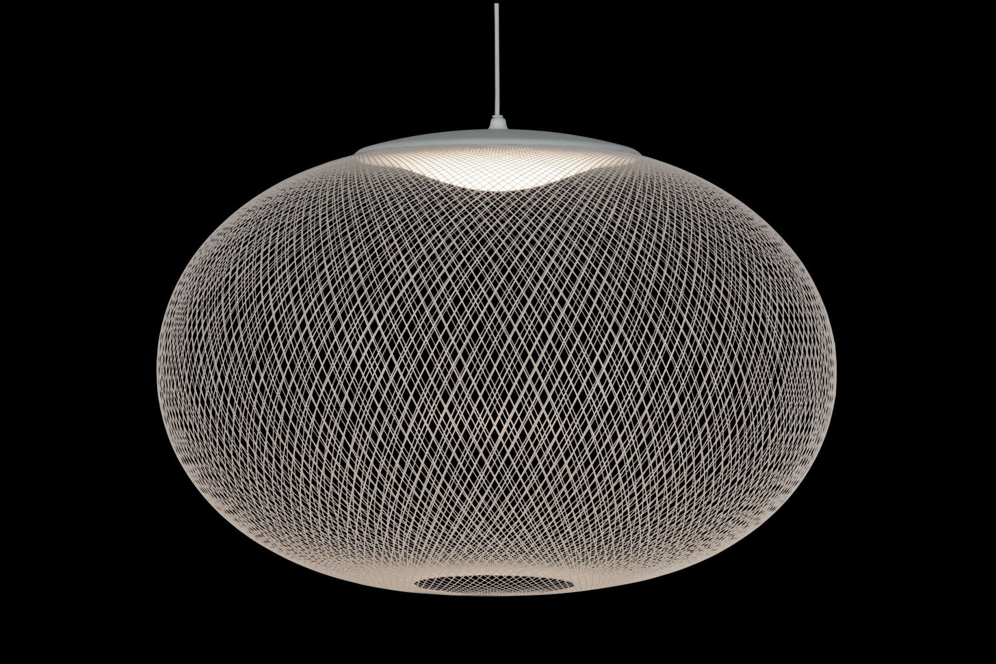 The Moooi NR2 by Bertjan Pot transforms simple fiberglass thread into this elegant, lighthearted bubble that seems to glow from within. The fine web of epoxy-coated thread creates this intricate lattice pattern that shines and glimmers whenever light hits it, making the entire fixture feel alive and dynamic. What's brilliant about the design is how the thread structure becomes both the aesthetic and functional element - it diffuses the integrated LED light beautifully while creating these delicate shadow patterns that dance across your walls. Available in classic white or dramatic black thread options, the NR2 brings substantial presence without blocking sight lines, so you can hang it anywhere from dining areas to entryways without cutting up your space visually.