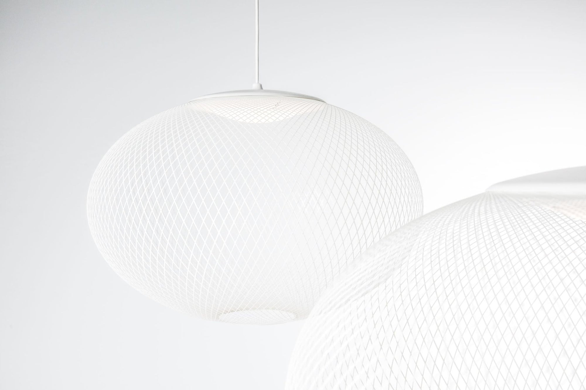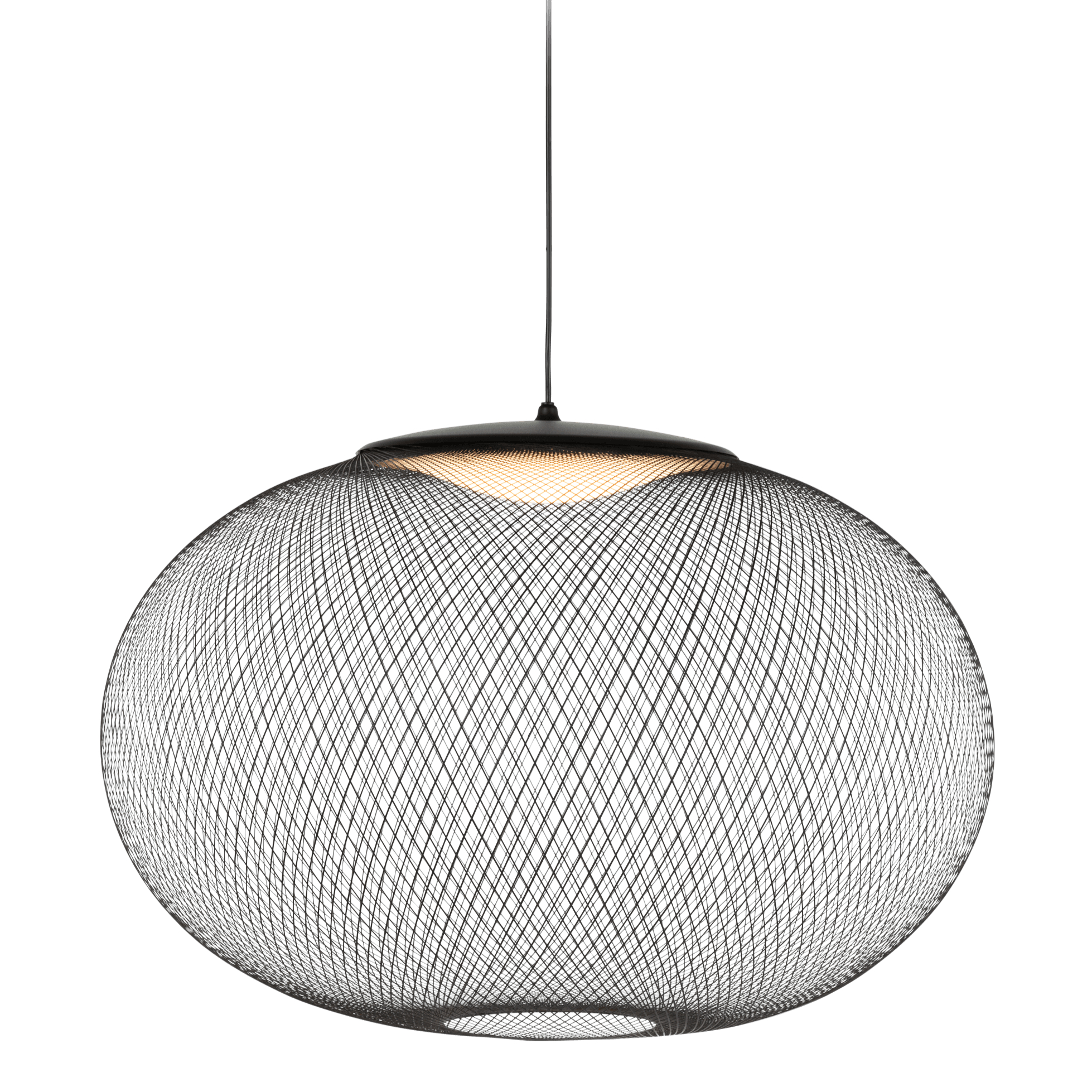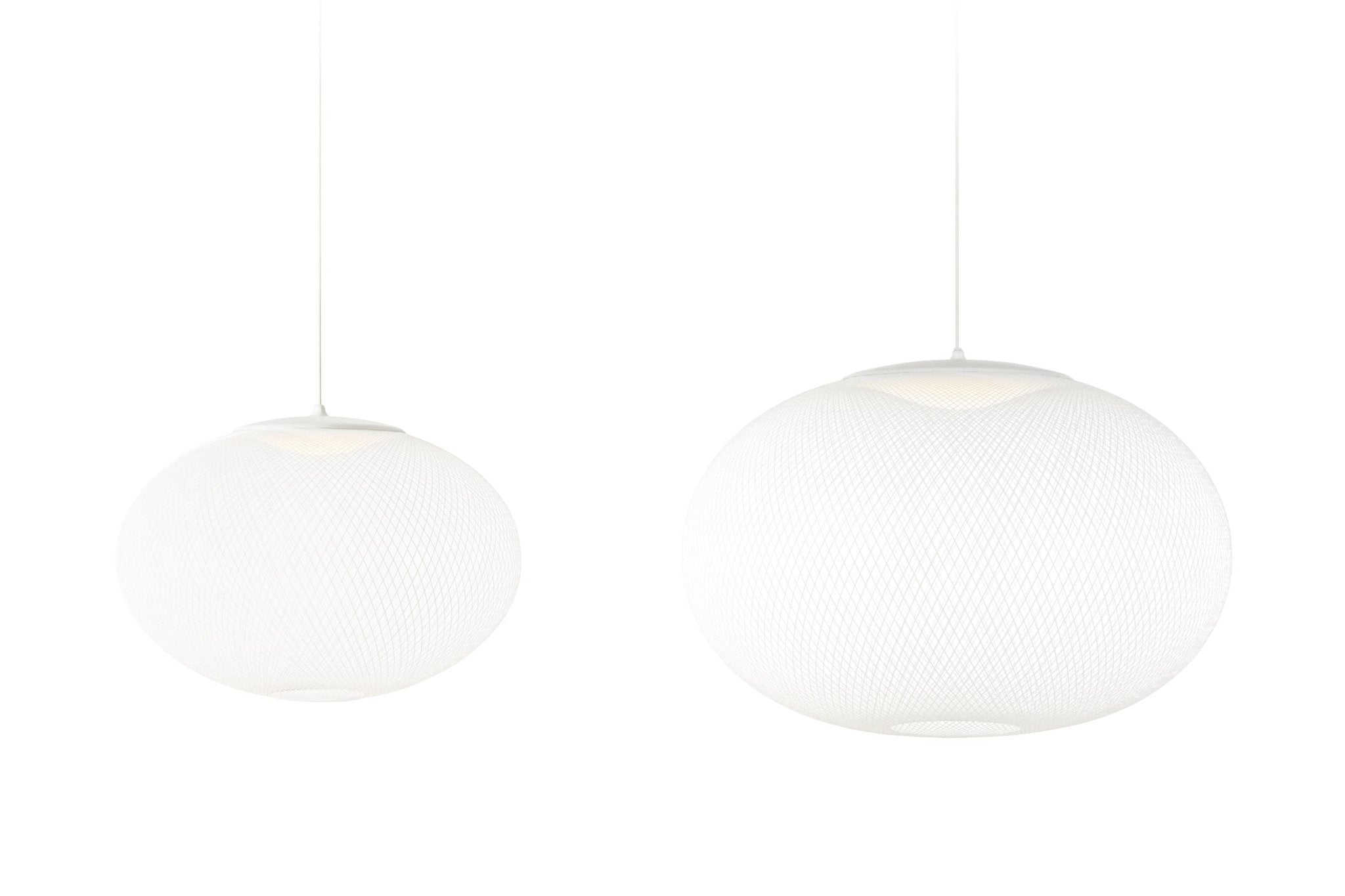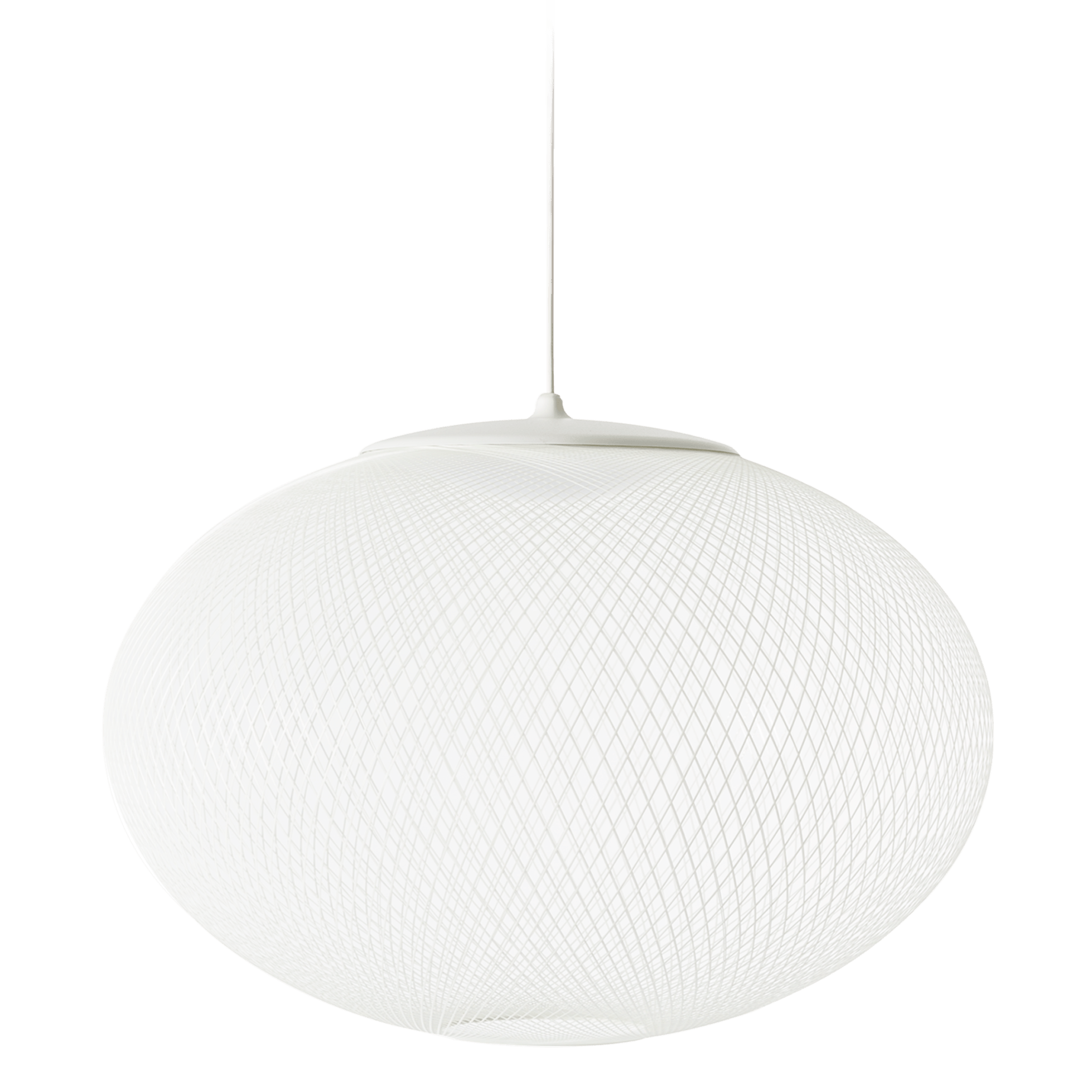 The Moooi NR2 by Bertjan Pot transforms simple fiberglass thread into this elegant, lighthearted bubble that seems to glow from within. The fine web of epoxy-coated thread creates this intricate lattice pattern that shines and glimmers whenever light hits it, making the entire fixture feel alive and dynamic. What's brilliant about the design is how the thread structure becomes both the aesthetic and functional element - it diffuses the integrated LED light beautifully while creating these delicate shadow patterns that dance across your walls. Available in classic white or dramatic black thread options, the NR2 brings substantial presence without blocking sight lines, so you can hang it anywhere from dining areas to entryways without cutting up your space visually.