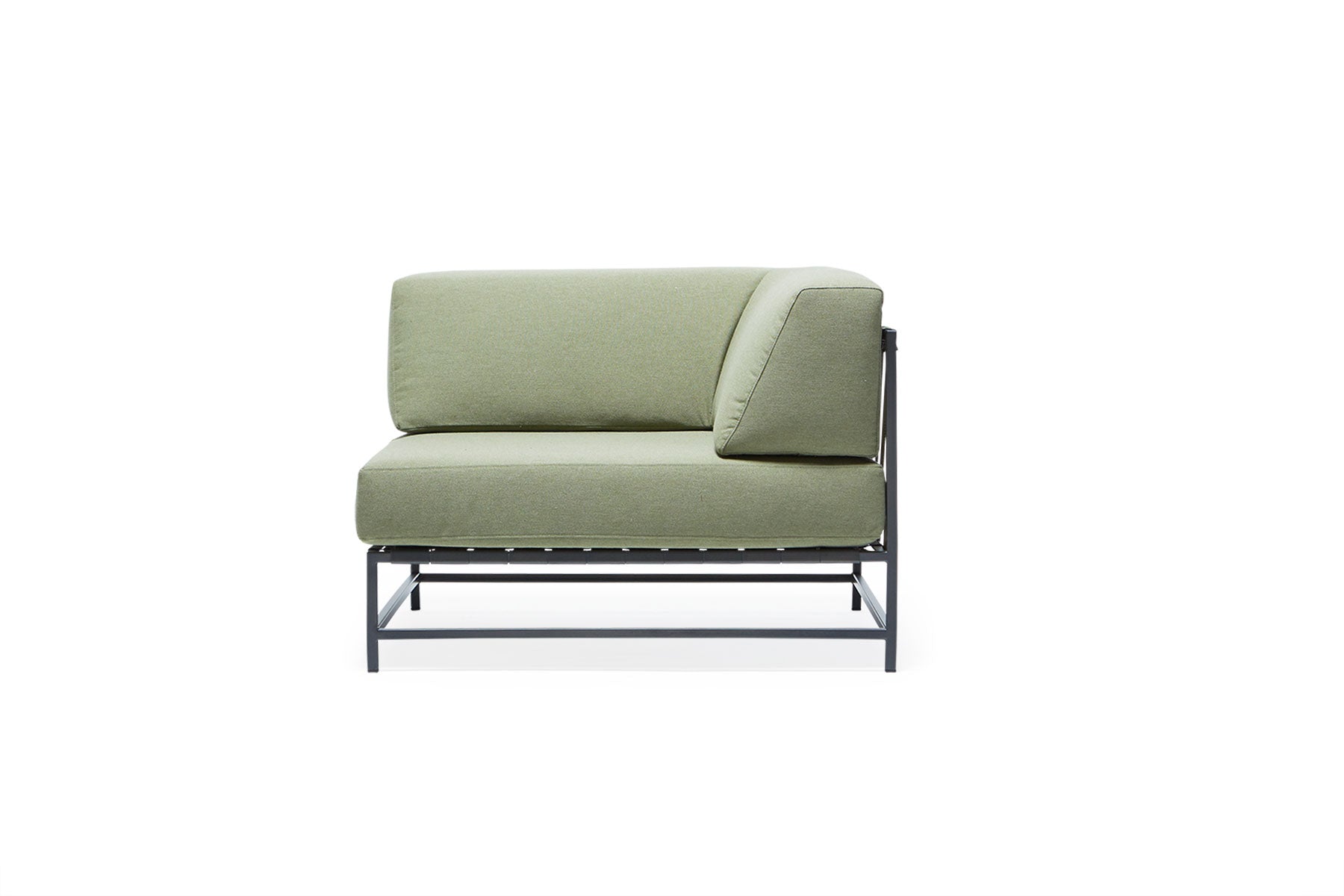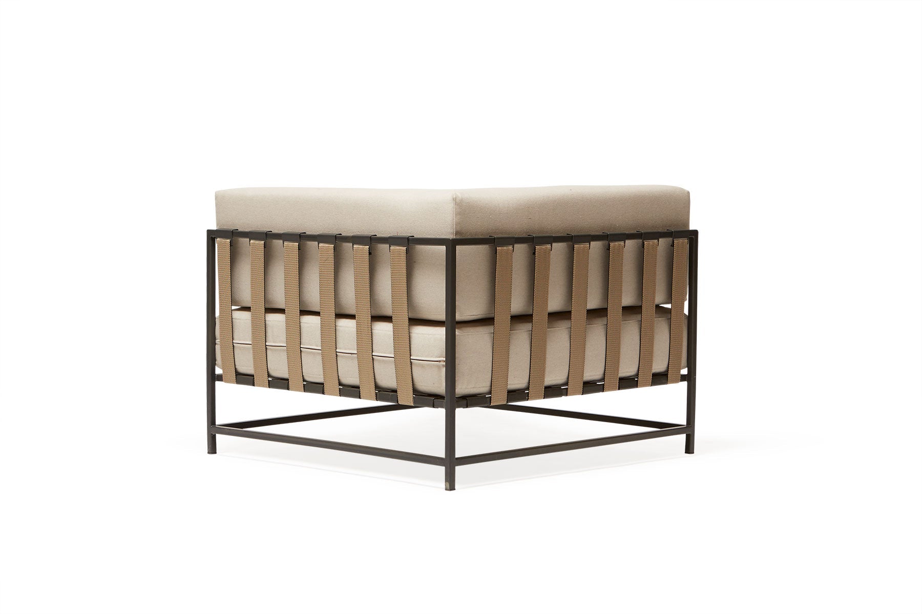 The Stephen Kenn Outdoor Corner Chair combines comfort and strength, making it perfect for your outdoor space. First, it features a zinc-treated, powder-coated steel frame that holds up well against weather changes. In addition, its seat has interwoven belts from the Inheritance Collection, giving firm yet flexible support. Plus, the Sunbrella fabric cushions resist rain and sun, keeping the chair stylish and comfy for years.