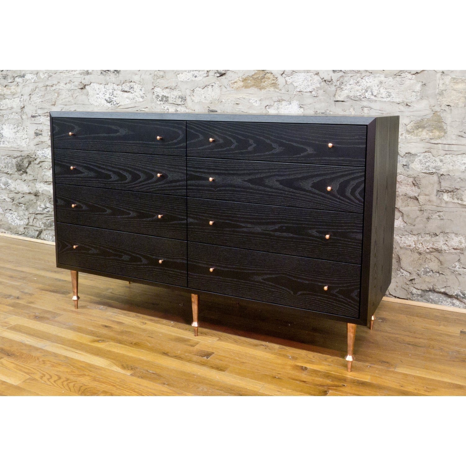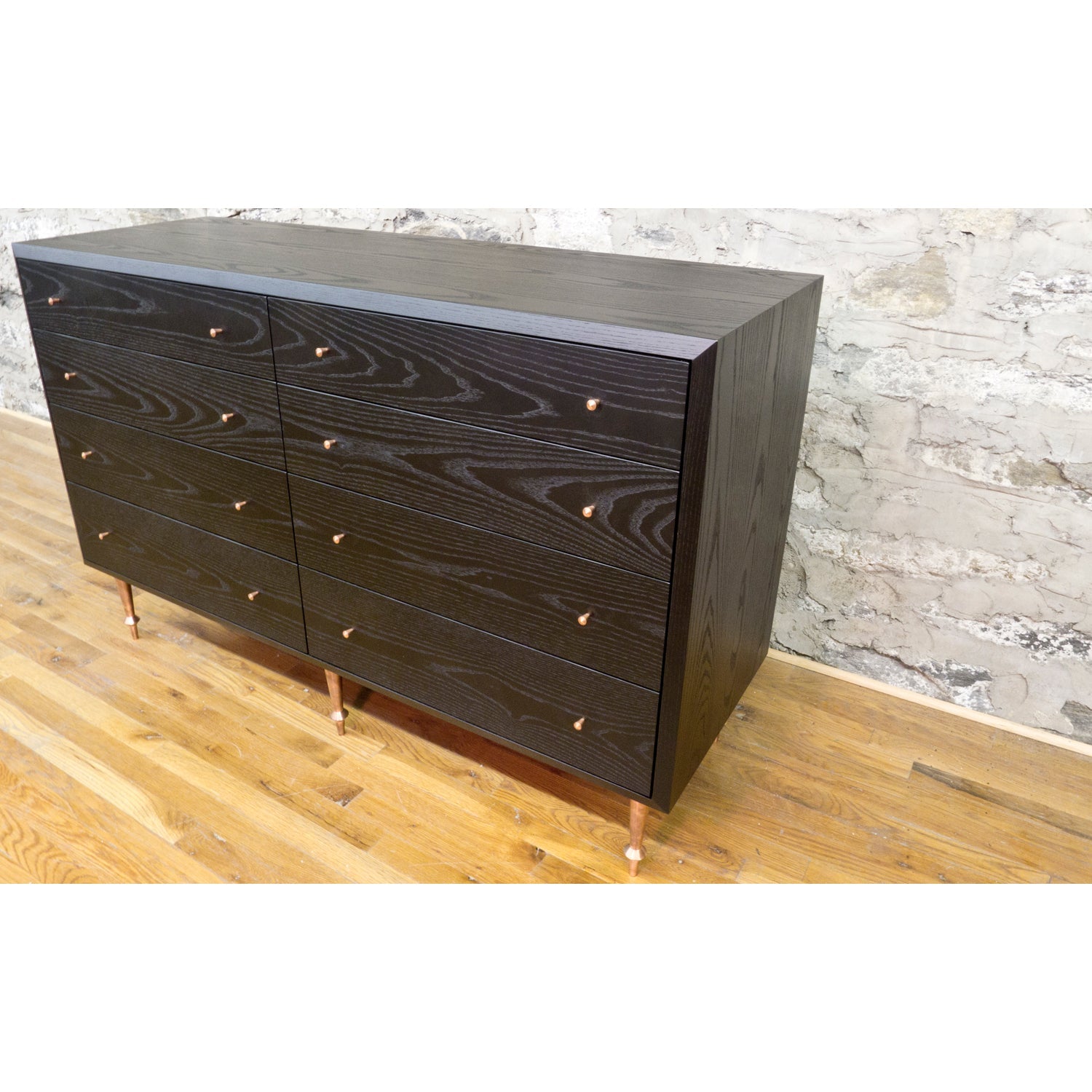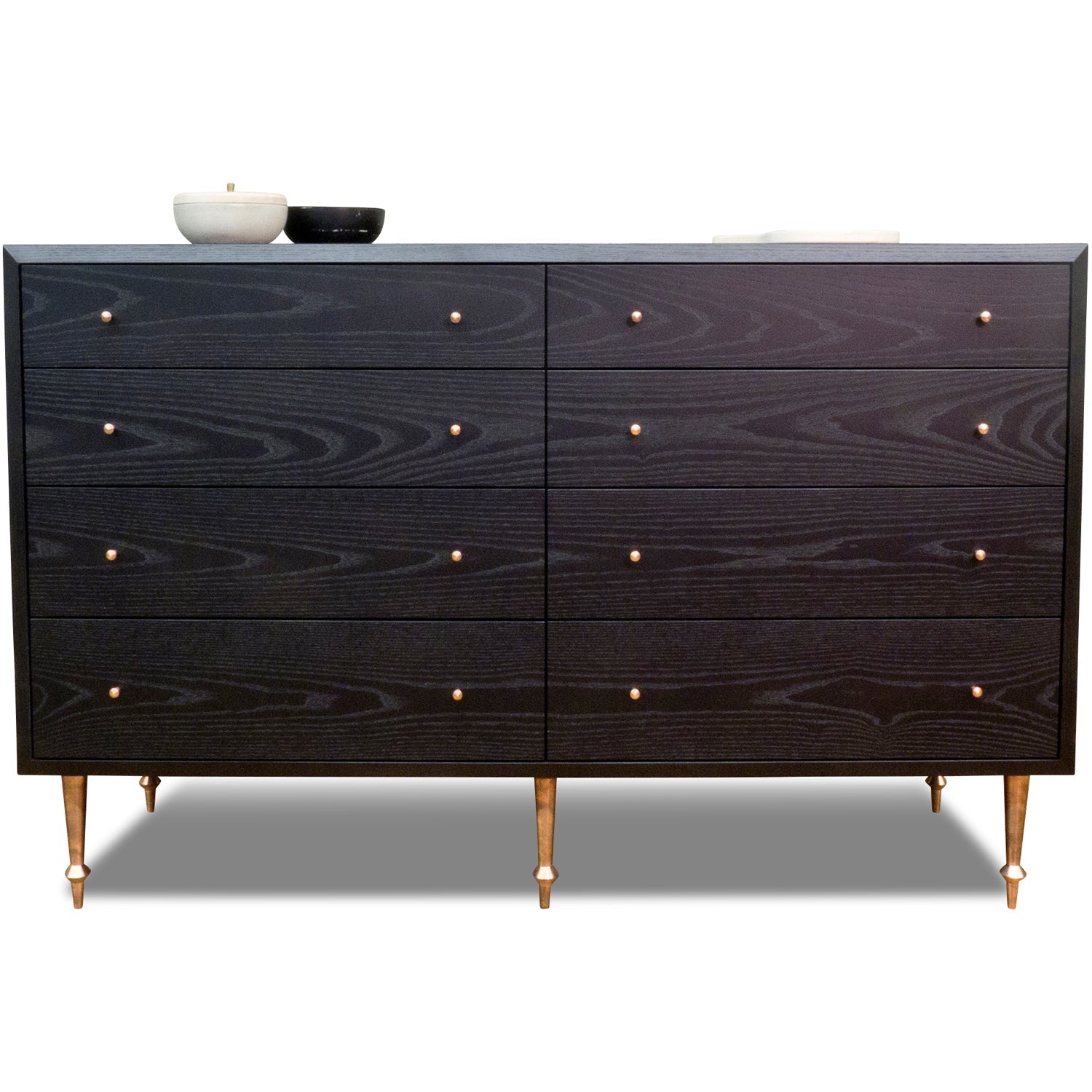 The Volk Pacific Dresser combines form and function, making it a striking addition to any room. Featuring turned solid brass legs, its simple yet elegant design makes a bold statement in modern furniture. Additionally, the Volk Pacific Dresser is available in custom sizes, allowing it to fit seamlessly into various spaces. You can choose any VOLK hardware to match your style, creating a piece that is truly yours. Handmade in Brooklyn, NY, this dresser stands out for its quality craftsmanship and sophisticated presence in any home.