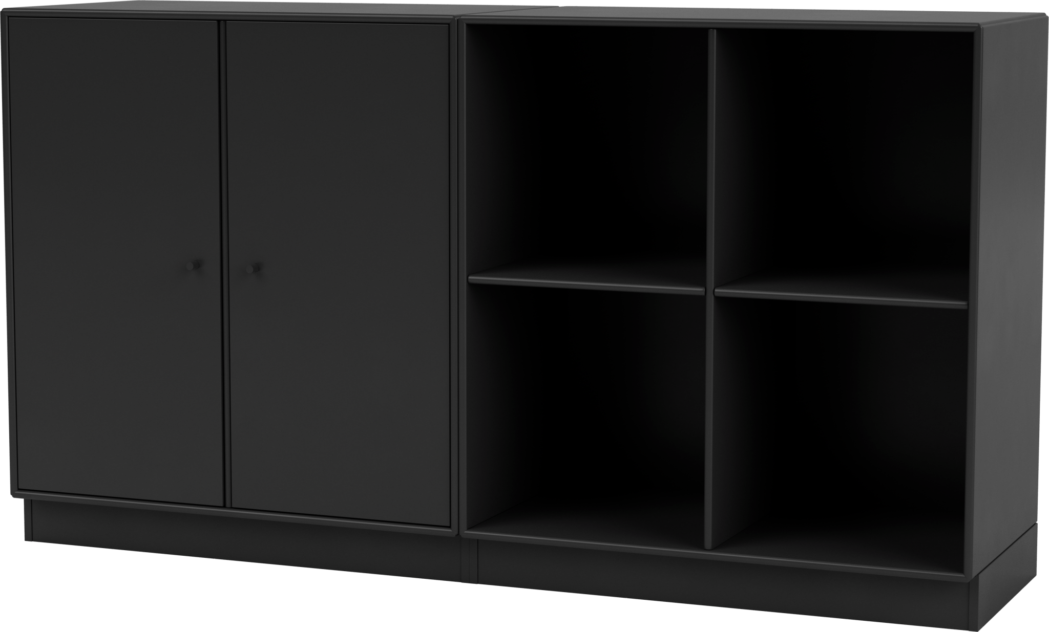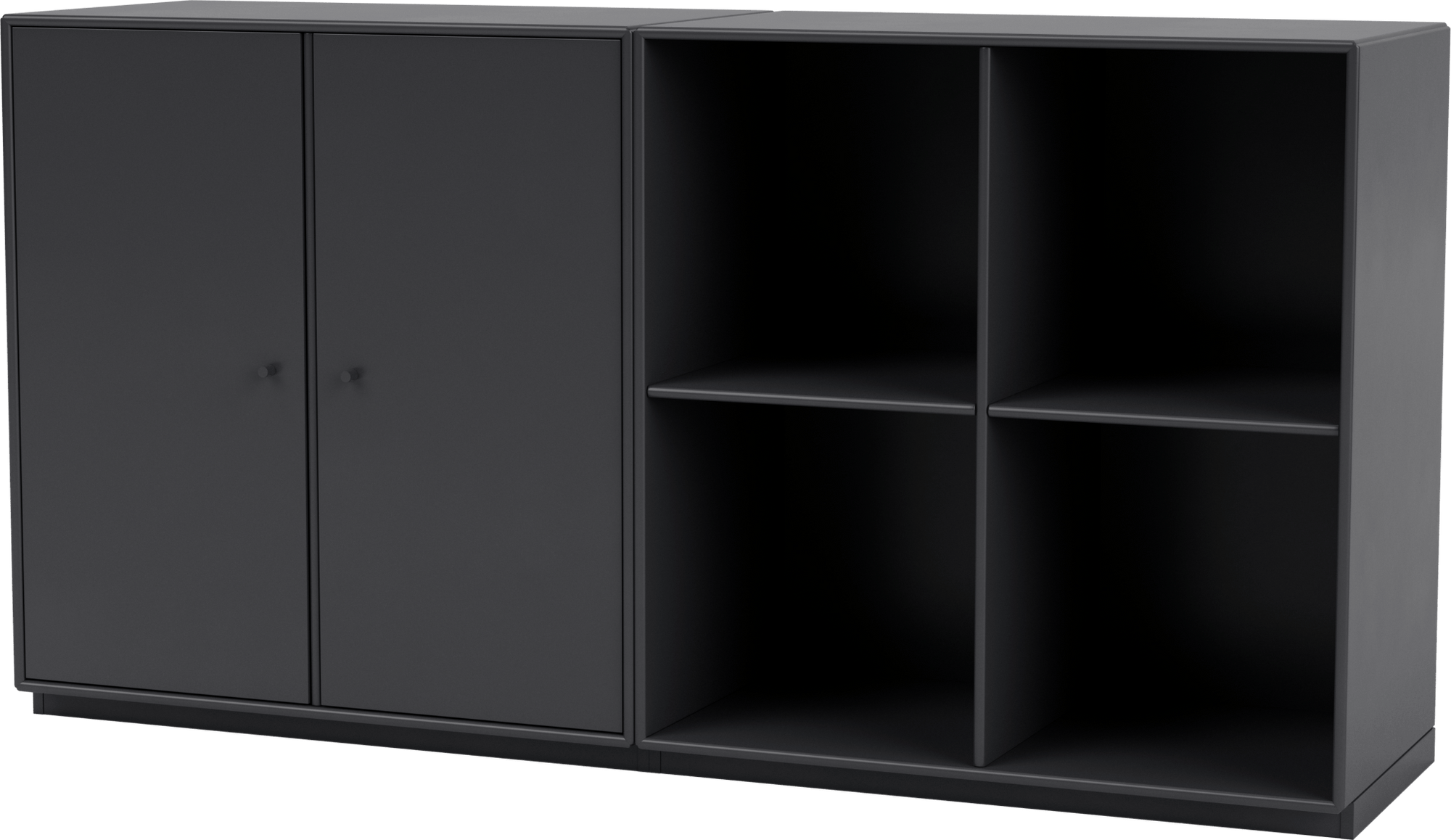 A clever combination of two different modules, the Pair Classic Sideboard features a two-door cabinet and a dresser of open shelf compartments. Keep the units together as a sideboard or separate them for two classic storage solutions. The Pair Classic Sideboard is available in nine of Montana’s signature color lacquers and can be wall mounted or stand on legs or a plinth base. Use the Pair Classic Sideboard to hide away or display everyday essentials, books, shoes, knickknacks, and more in offices, bedrooms, entryways, and more.