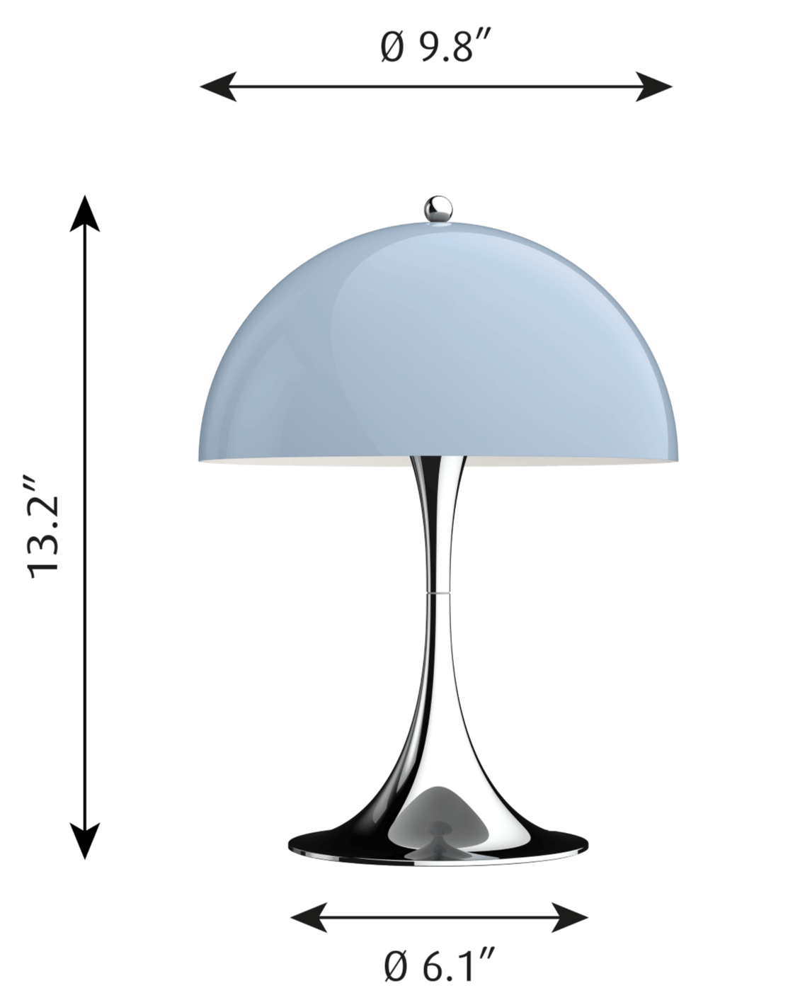 The Panthella 250 Table Lamp by Louis Poulsen is a design classic created by Verner Panton in 1971. Its distinctive half-sphere shade and trumpet-shaped base provide a soft, even glow, creating a warm atmosphere. Measuring 9.8 inches in diameter and 13.2 inches in height, it fits perfectly on small tables, shelves, or windowsills. With its sleek and compact form, this Louis Poulsen table lamp enhances both modern and traditional interiors.