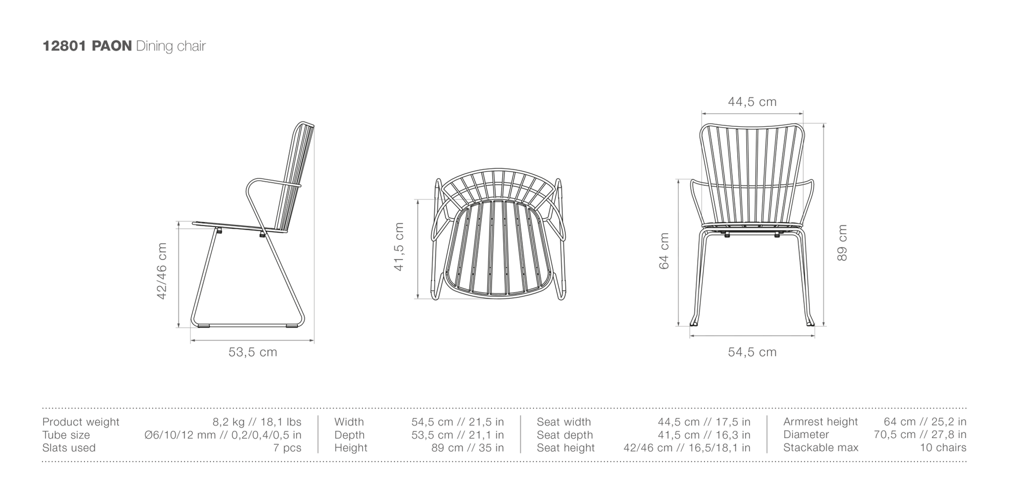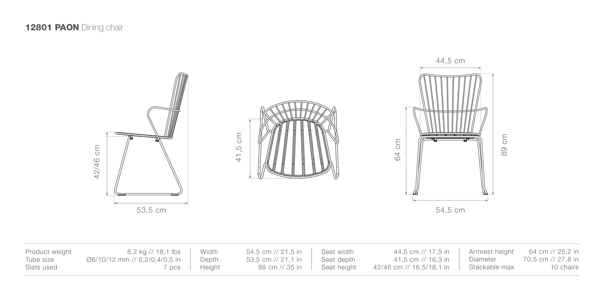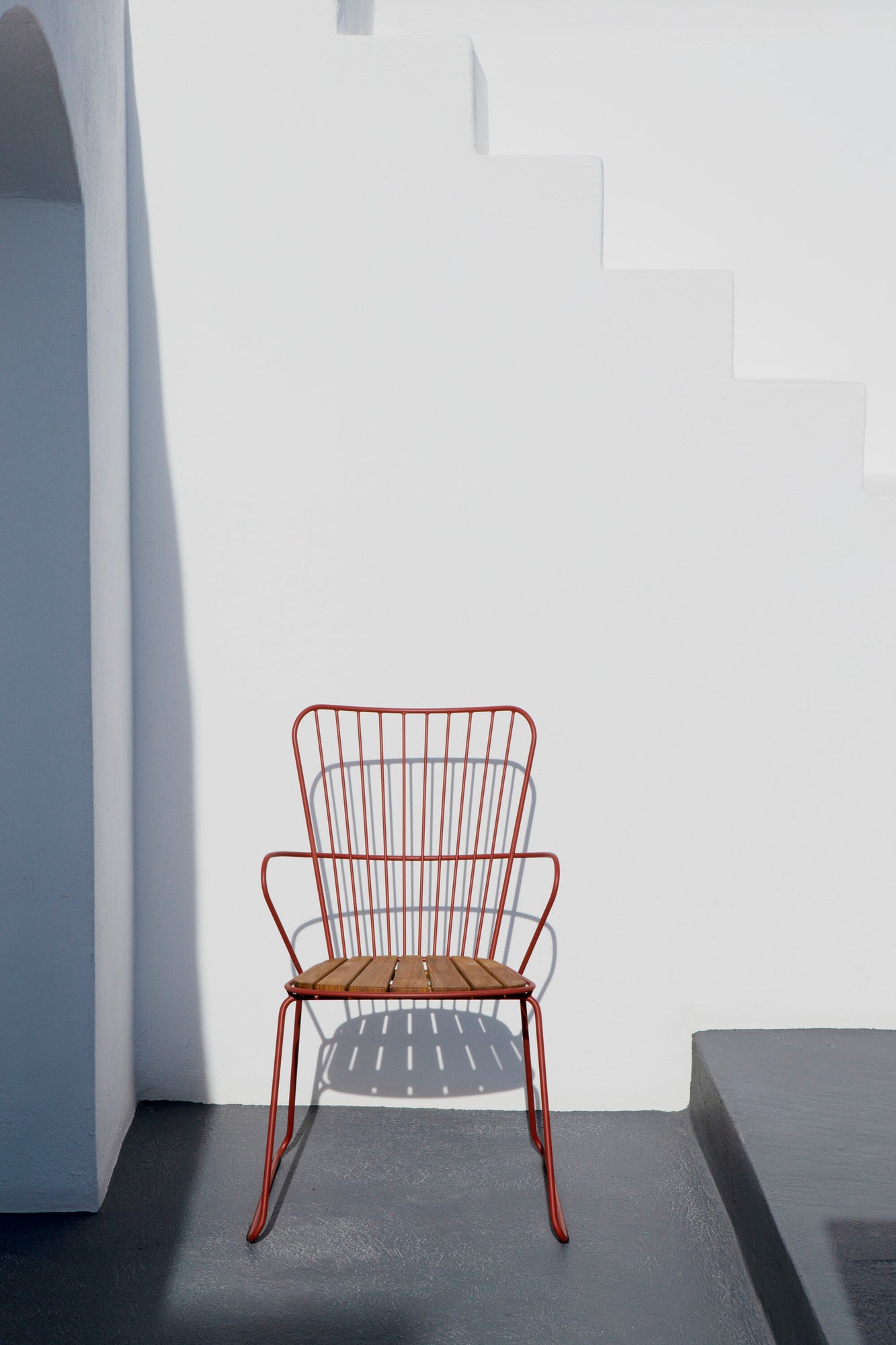 The HOUE PAON Outdoor Dining Chair brings modern elegance to your outdoor dining space. Its sleek powder-coated steel frame contrasts beautifully with the warmth of curved bamboo slats. This combination offers durability and natural style. Whether paired with a teak outdoor dining table or bistro table and chairs, the PAON Outdoor Dining Chair enhances patios, gardens, and decks with its clean lines and refined Scandinavian design.