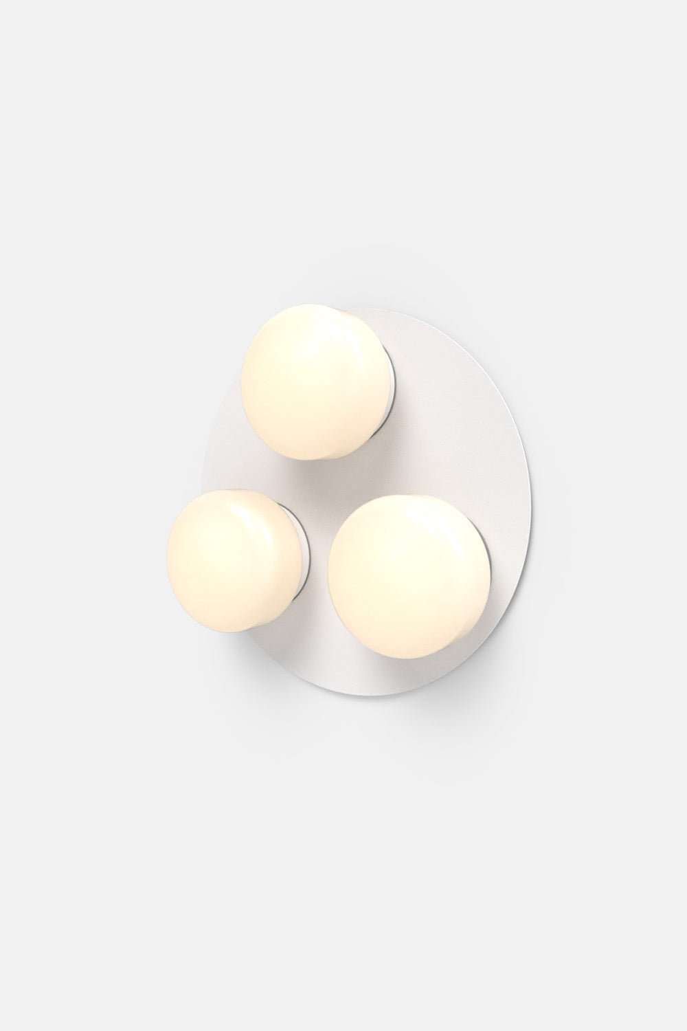 The RBW Pastille 3 Cluster takes that essential minimalist disc design and groups three of them together in this arrangement that somehow feels both orderly and organic at the same time. Instead of just scaling up a single disc, they've created this constellation effect where each opal glass circle maintains its individual character while contributing to a larger lighting statement. The three discs on their aluminum or steel plates create this nice rhythm that works particularly well in spaces where you need more substantial illumination but don't want something bulky or overly decorative. What's smart about the clustering approach is how it distributes light more evenly across larger areas while maintaining that clean, uncluttered aesthetic that makes the Pastille collection so appealing.