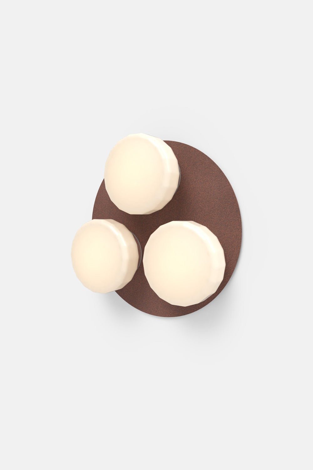 The RBW Pastille 3 Cluster takes that essential minimalist disc design and groups three of them together in this arrangement that somehow feels both orderly and organic at the same time. Instead of just scaling up a single disc, they've created this constellation effect where each opal glass circle maintains its individual character while contributing to a larger lighting statement. The three discs on their aluminum or steel plates create this nice rhythm that works particularly well in spaces where you need more substantial illumination but don't want something bulky or overly decorative. What's smart about the clustering approach is how it distributes light more evenly across larger areas while maintaining that clean, uncluttered aesthetic that makes the Pastille collection so appealing.