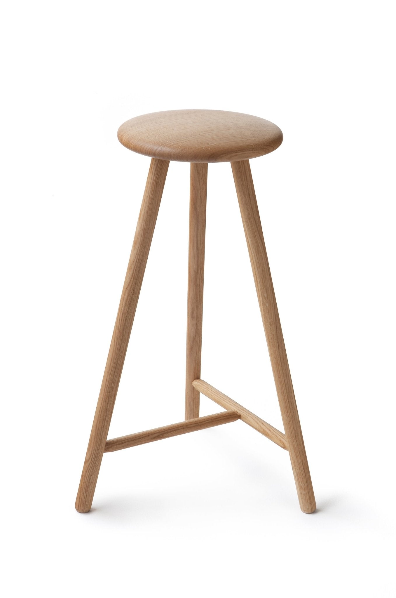 The Nikari Perch Bar Stool brings together modern design and classic Finnish craftsmanship. Inspired by a Helsinki doorknob, this award-winning nikari stool features a rounded oak seat and turned legs. The T-shaped rung arrangement enhances its strength and beauty. Whether used at a home bar or in the kitchen, the Perch Bar Stool offers a sophisticated touch to any interior. Thanks to its clean lines, the Perch Bar Stool fits seamlessly into a variety of spaces. Pair this nikari stool with Scandinavian furniture, or place it beneath a dining room chandelier for added elegance. It also works beautifully alongside a media console or with a lounge chair. Add a wine glass, carafe, or tea kettle nearby to complete the setting with refined style. Handcrafted by Nikari, the Perch Bar Stool reflects the brand's commitment to sustainability and craftsmanship. Made from responsibly sourced oak, each piece is crafted with care in Finland. Since 1967, Nikari has been producing Scandinavian furniture that combines tradition with modern design. When you choose Nikari, you choose timeless pieces that are built to last and designed to inspire.