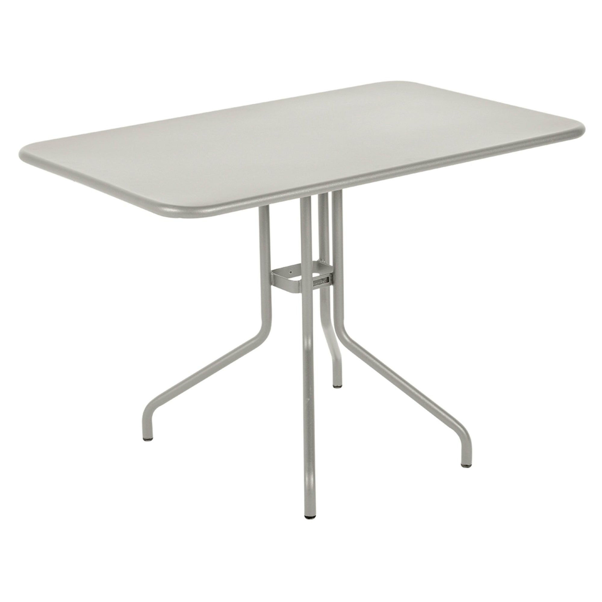 This modern table has a fold-away top for saving space whenever you need. The 43"x28" size fits four people comfortably. Tubular steel base and electro-zinc coated solid steel sheet table top.