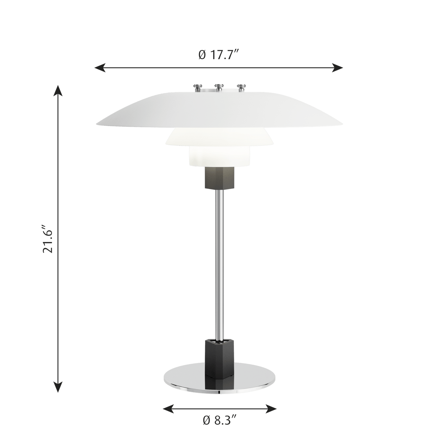 Dimensions: 21.6"H x 17.7" Shade Dia. x 8.3 Base Dia.