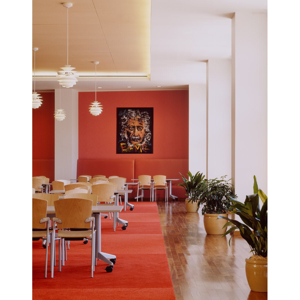Ideal for medium to low ceilings, the PH Snowball Pendant is perfect for spaces like dining rooms or meeting areas. Its light is directed downward, while the top remains illuminated, ensuring a pleasant and balanced ambiance without overpowering glare.