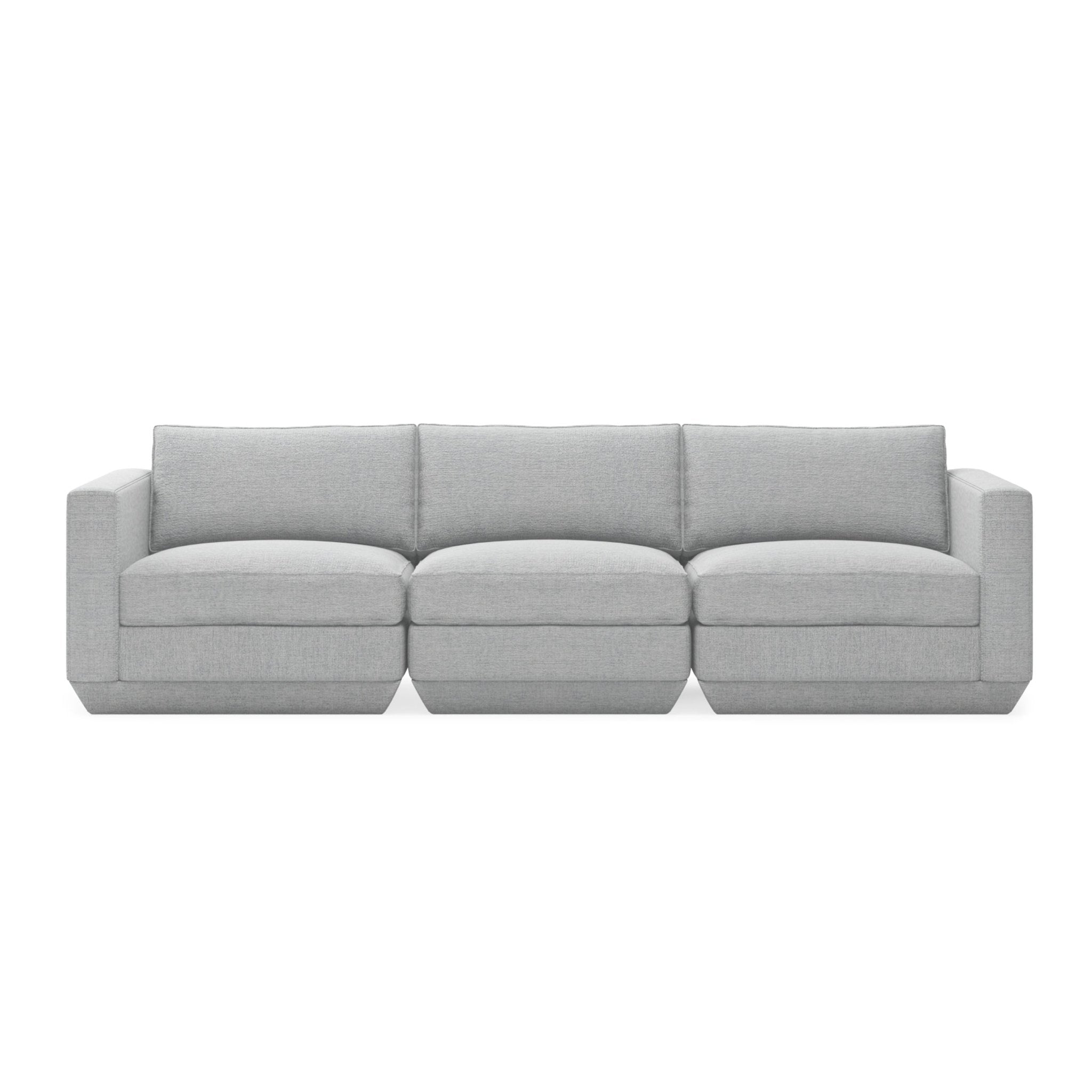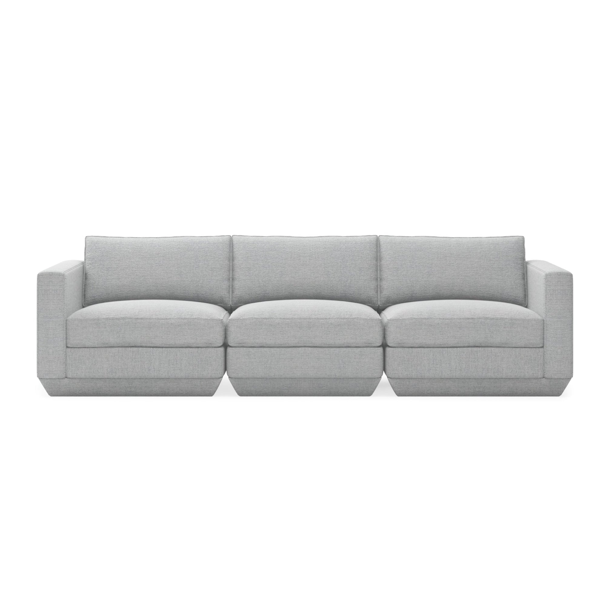 The Podium collection was made for relaxed, easy living. Featuring deep, luxurious cushions and clever details, like the chamfered base, the Podium Sofa is just one of the series’ modular pieces that can be arranged to suit living spaces of all shapes and sizes. Comfortably seating 3, the Podium Sofa is available in four modest colors, and the perfect companion to the Podium Lounge Sectional and the Porter Rectangular Coffee Table.