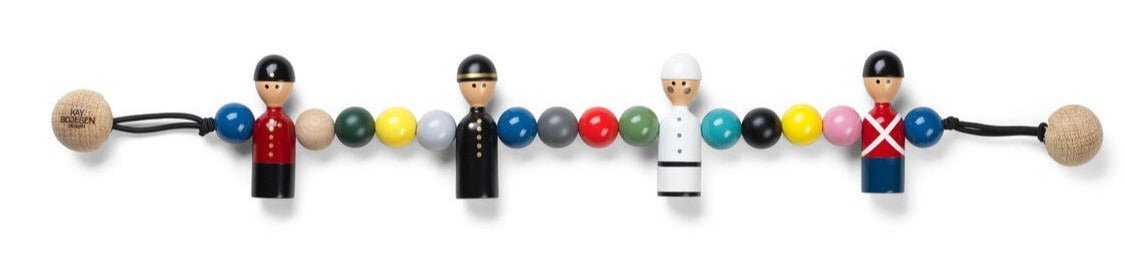 Make your baby's pram ride even more fun with the delightful Kay Bojesen Pram Chain. This charming accessory features a series of coloured wooden balls and delicate little wooden figurines, which are sure to inspire toothless smiles on your little one’s journey. Crafted from painted beech, it is both visually appealing and durable. Additionally, the Kay Bojesen Pram Chain is easy to attach and fits all types of prams, making it a practical and playful addition to every outing. It’s the perfect way to bring some joy and color to your baby’s daily adventures. Designed to captivate and entertain, the Kay Bojesen Pram Chain offers much more than just decoration. Its vibrant colours and whimsical wooden characters engage your baby’s attention, providing sensory stimulation during every ride. Whether you’re strolling through the park or on a quick errand, this pram chain helps make every journey enjoyable for both parent and child. Furthermore, it’s easy to secure and fits seamlessly onto prams of various styles, while its high-quality materials ensure it will last through many rides. Kay Bojesen, a legendary Danish designer, is best known for creating timeless wooden figures and toys that have captured the hearts of generations. His designs, such as the iconic wooden monkey, perfectly blend function and playful artistry. The Kay Bojesen Pram Chain is a wonderful example of this philosophy, combining fun and practical use for kids and babies alike. Known for his commitment to quality and craftsmanship, Kay Bojesen’s work remains a cherished symbol of joyful design, continuing to bring happiness to families worldwide.