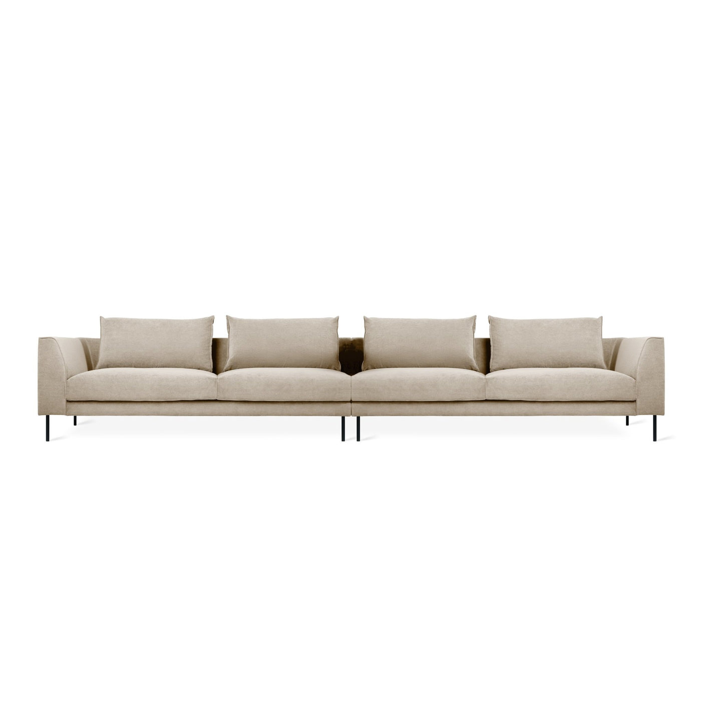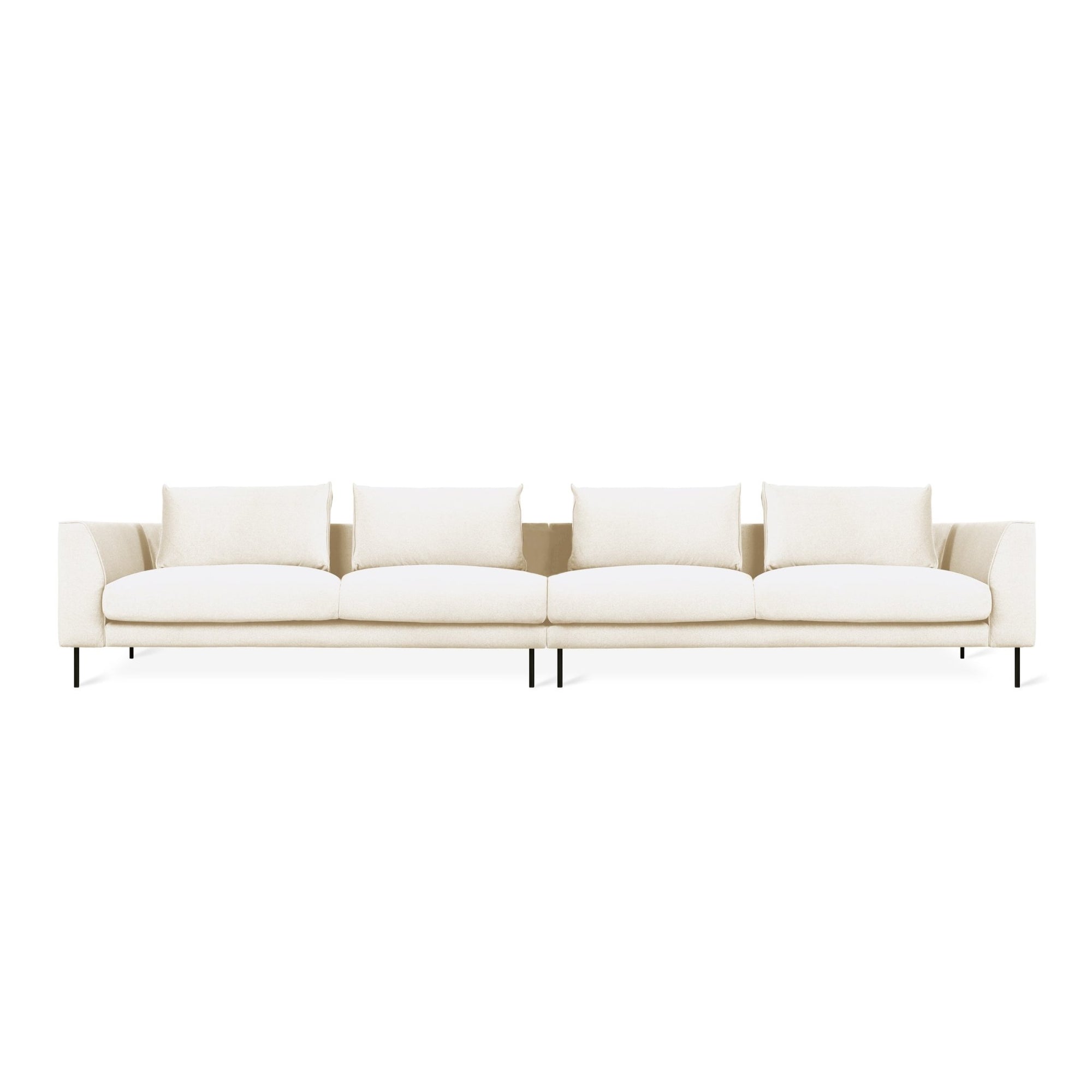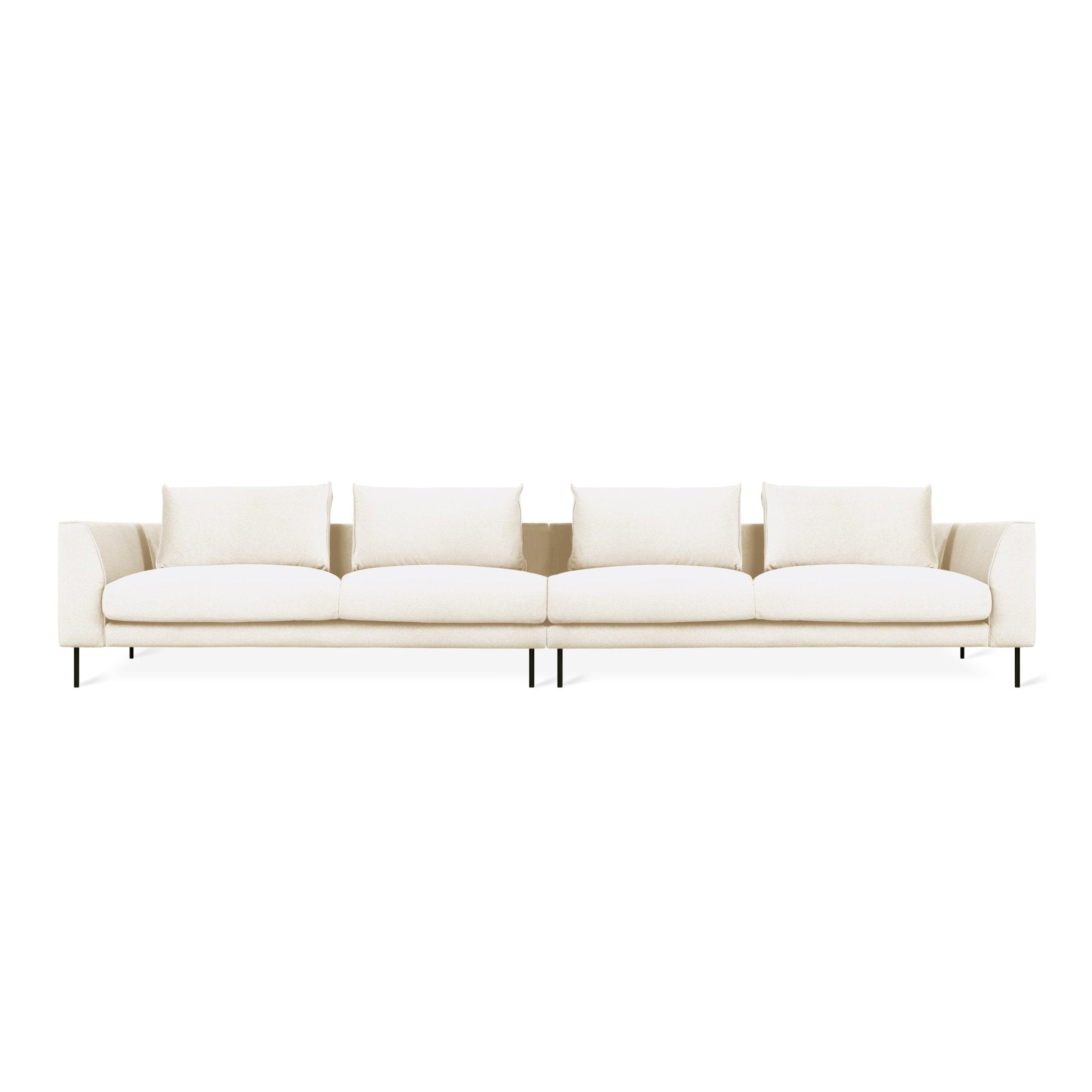 Elevating enchanting European modernism and effortlessly combining it with modest details, the Renfrew series adds elegance to all contemporary living spaces. Soft, rounded cushions are suspended on thin legs, giving the Renfrew XL Sofa a floating silhouette that simultaneously plays with minimalism while also inviting the user to sit and stay awhile. Part of the Renfrew semi-modular collection, the Renfrew XL Sofa lends itself perfectly to the addition of the Renfrew Ottoman or being paired with the Renfrew Right/Left Arm Sofa. An adaptation of the Renfrew Sofa, the Renfrew XL Sofa is the perfect choice for larger living spaces.