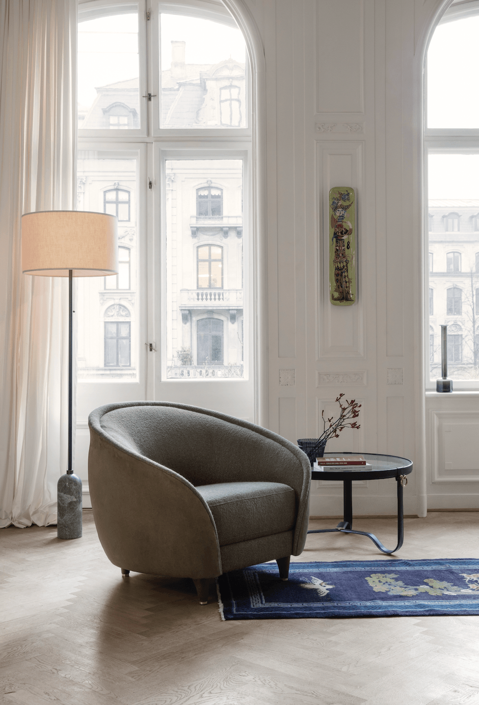 The Revers Lounge Chair is available in five upholstery options that each beautifully balance the walnut or oak legs and elevate the unique silhouette. Pair the lounge chair with the Pedrera Lounge Table and the 9602 Floor Lamp.