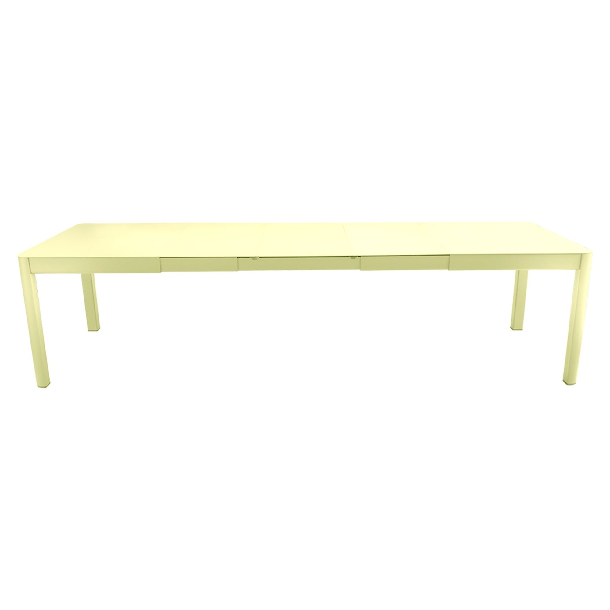 The Fermob Ribambelle XL Table with 3 Extensions is perfect for both large and intimate gatherings. When fully extended to 118", this fermob table comfortably seats up to 12 people. Additionally, the telescoping system allows the extensions to be conveniently stored under the tabletop, ensuring your space remains neat and tidy. Therefore, whether hosting a dinner party or relaxing outdoors, this table adapts to your needs.