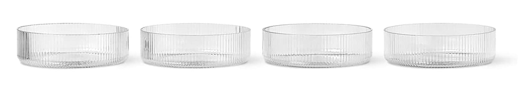 Made from delicate glass which has been mouth-blown into a rippled mould, the Ripple Serving Bowls are a set of four bowls that feature the same characteristic surface distinctive to the Ripple series. Use the set to serve appetising olives, tapenades or other savoury snacks to your guests, or to present your loved ones with a delicious dessert.