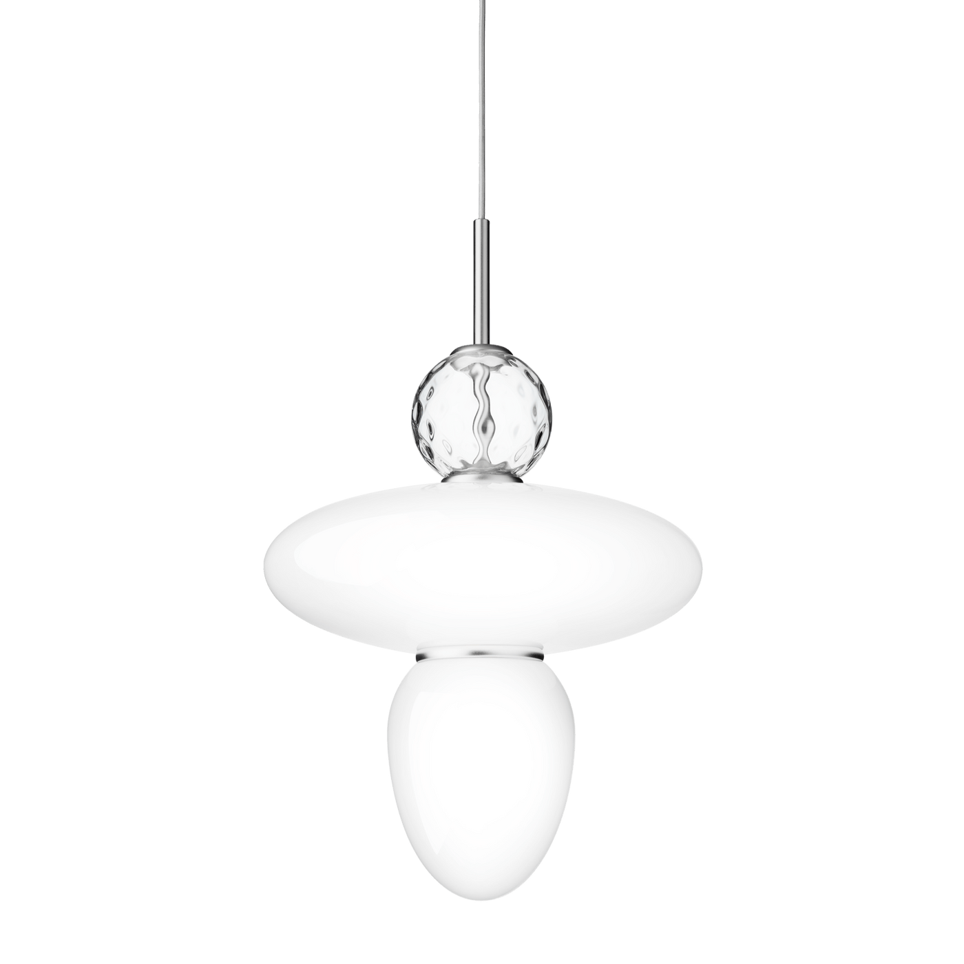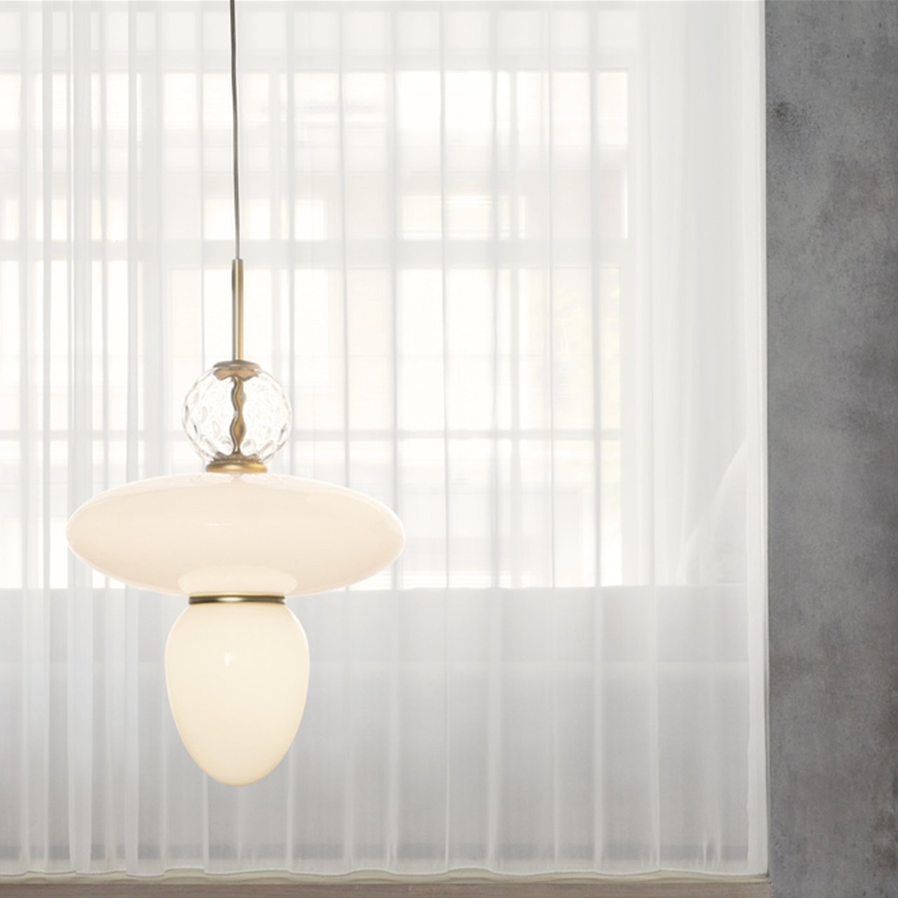Designed to fit seamlessly into various styles, the Nuura Rizzatto 43 works well as modern lighting in Scandinavian furniture settings. The combination of smooth opal white and clear textured glass creates a soft, inviting glow. This pendant also complements Scandinavian lighting and modern chandelier designs, enhancing any space with both warmth and elegance.