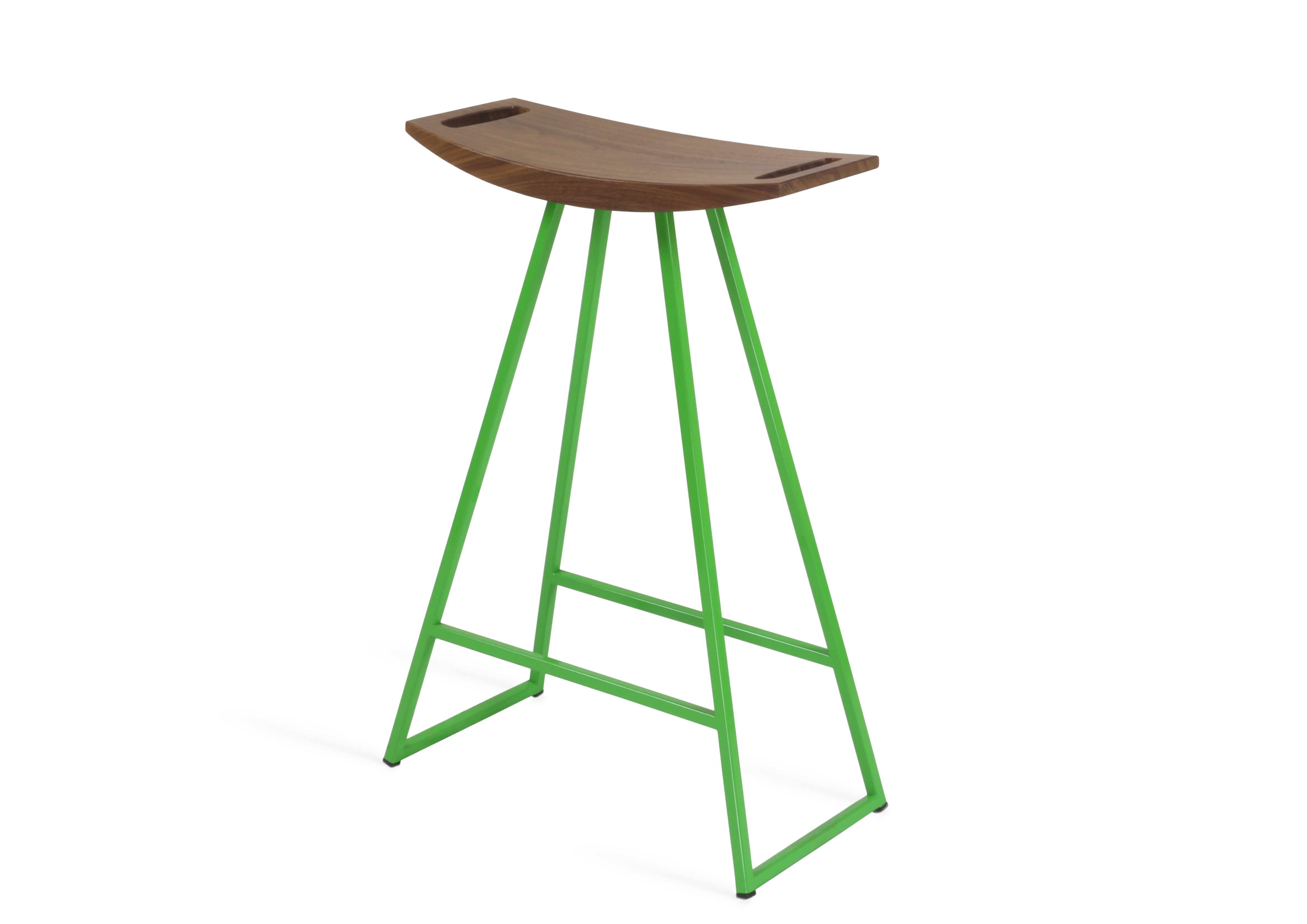 The Tronk Roberts Counter Stool is a sleek and modern seating option, ideal for compact spaces. Its slim profile allows it to easily tuck under counters, making it perfect for apartments or cozy kitchens. Crafted from high-quality walnut or maple, the stool's seat features a unique intersecting diagonal accent inlay, which adds an elegant touch. Additionally, the built-in handles and almost triangular legs enhance both its aesthetic appeal and functionality, making this stool a versatile and stylish addition to any room.