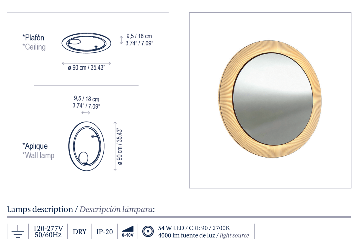 - Dimensions: 35.43" Dia. x 7.09"H x 3.74"D