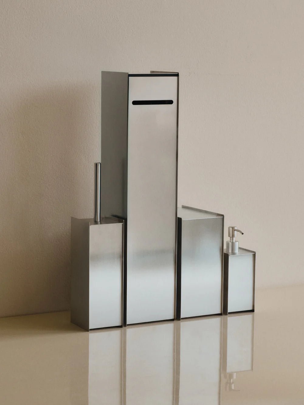 Ferm Living, based in Copenhagen, designs with balance, simplicity, and soul through their commitment to creating bathroom accessories that prove even the most practical items can embody sophisticated design principles. The Sama Toilet Brush reflects the brand's passion for bringing thoughtful design consciousness to every aspect of bathroom living while maintaining the functionality essential for proper home hygiene. Not only do they create exceptional individual bathroom tools that work beautifully alone, but they also offer the complete Sama collection including soap dispensers, waste bins, and toilet paper holders all designed to work harmoniously together as a cohesive bathroom system. Through brushed stainless steel construction, geometric forms that balance bold presence with timeless appeal, and that distinctly Danish approach to elevating utilitarian objects through refined aesthetics, Ferm Living helps you build bathroom environments that feel personal, sophisticated, and deeply considered while bringing design excellence into the most essential aspects of daily cleanliness and home maintenance.