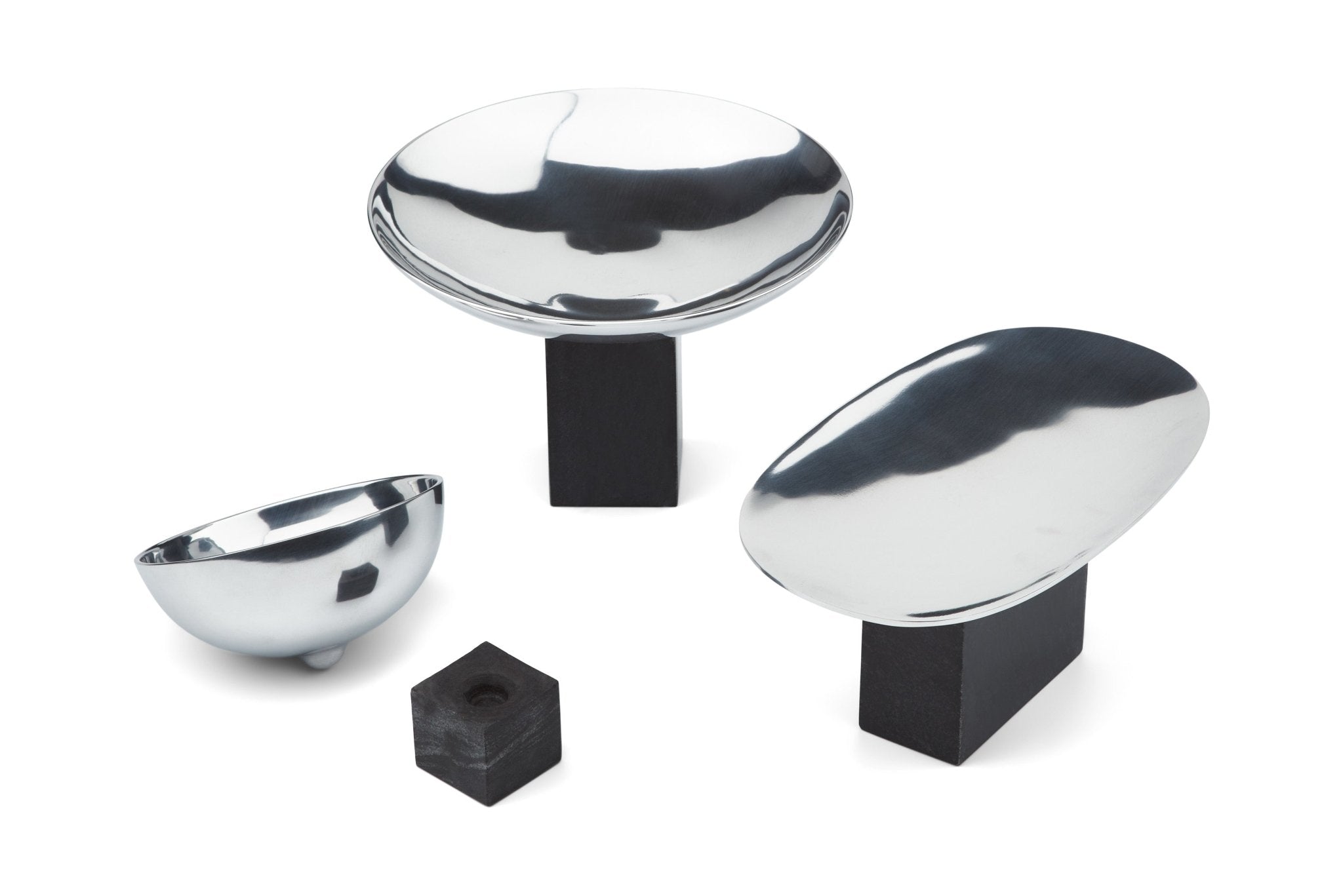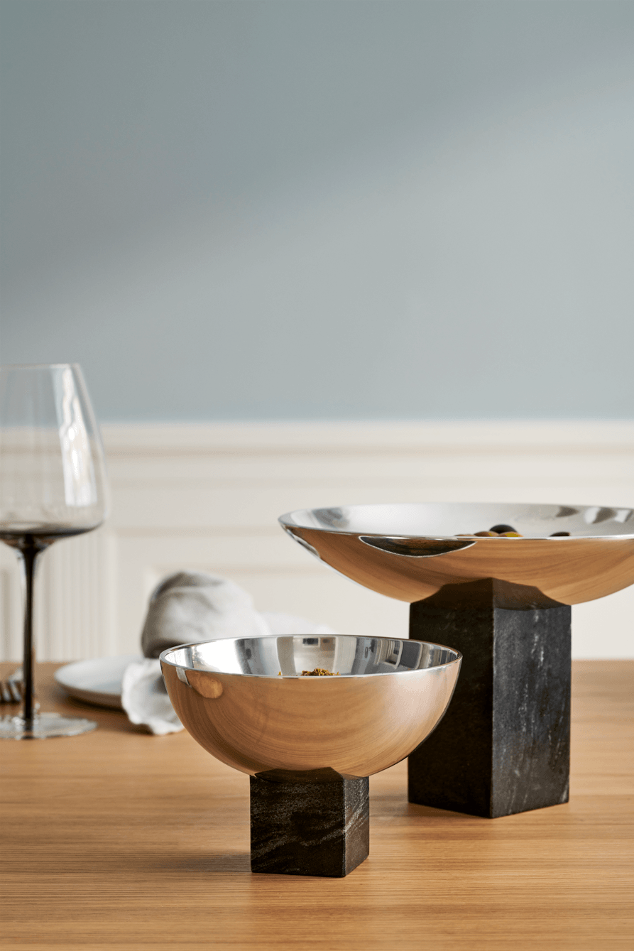 The Gejst Sapoto Bowl Serveware is a perfect blend of elegance and modern design. Made from shiny, reflective aluminum atop a robust marble base, it creates a striking contrast that catches the eye. The touch of Brutalism gives the Gejst Sapoto Bowl Serveware a bold, sophisticated presence on any sideboard or dinner table. Paired with the Sapoto Tray, it enhances the style and functionality of your space, making it a must-have in any home.