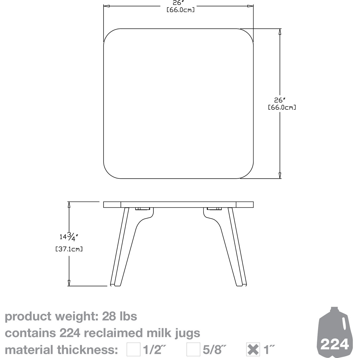 Material: 100% Recycled Milk Jugs