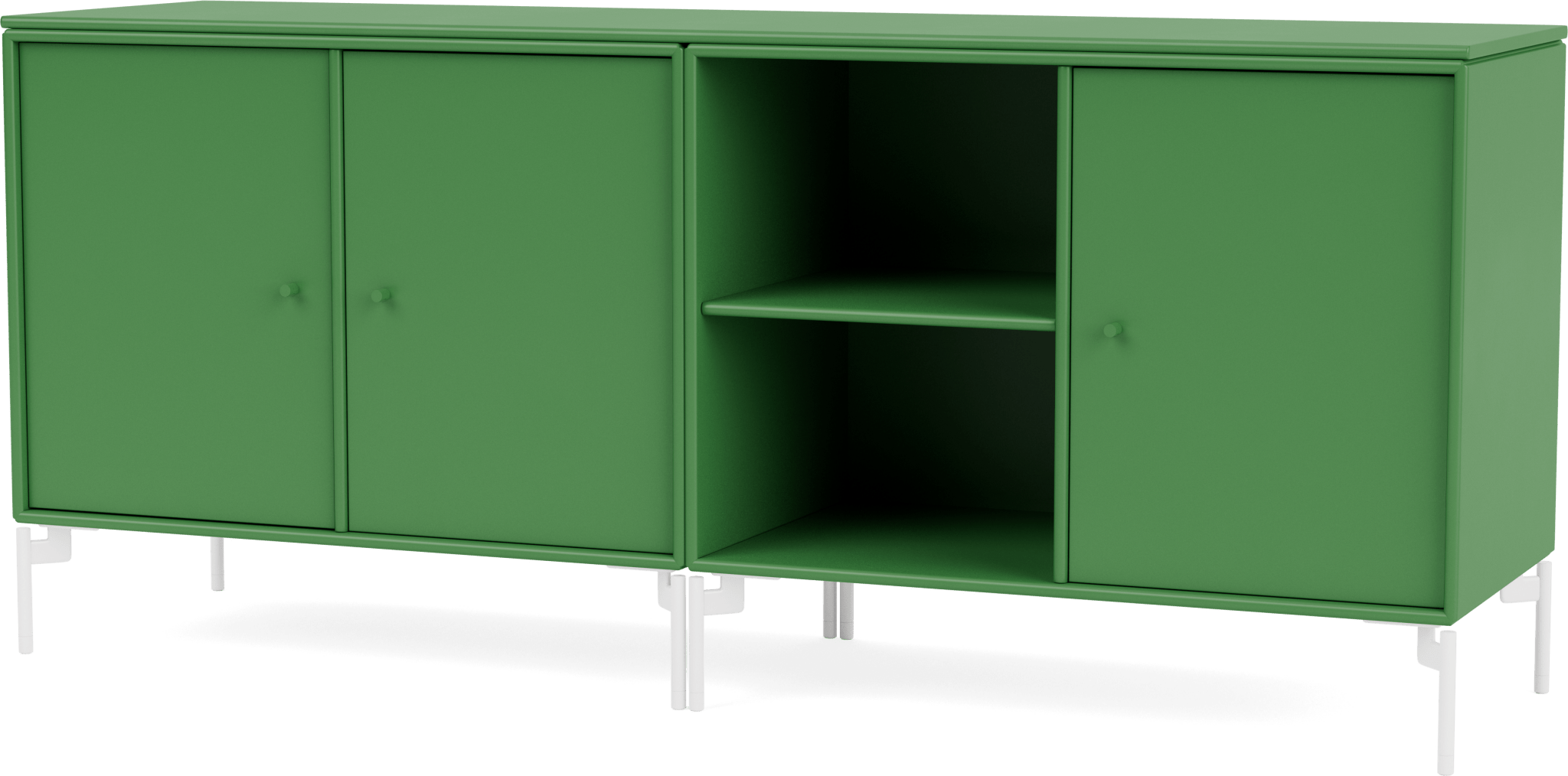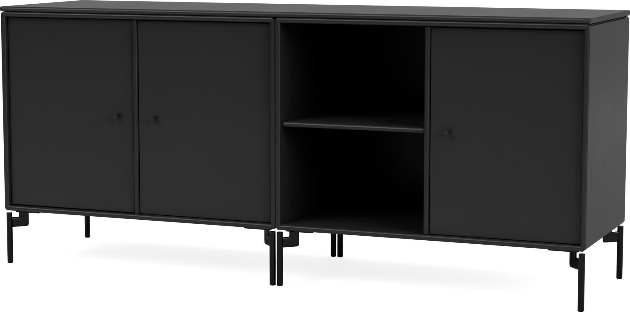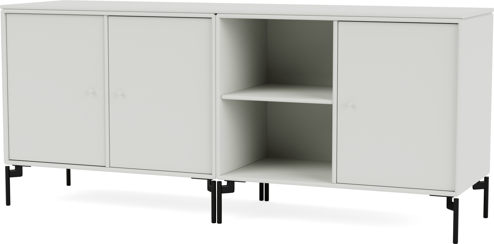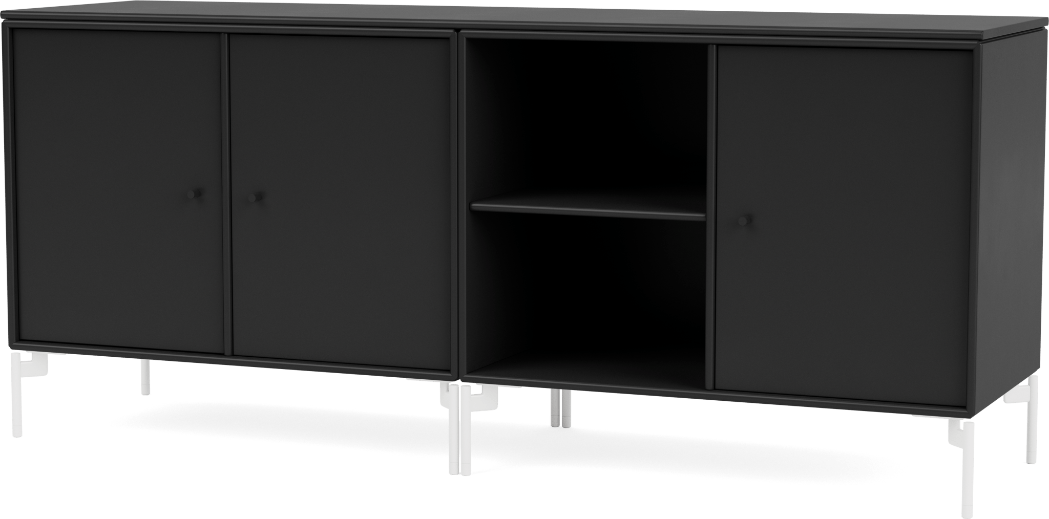 The Save Lowboard is the perfect addition to living room, bedroom, and office storage. Featuring three large cabinets and two open shelves, the Save Lowboard easily stores or displays everyday essentials. The clean and minimalistic aesthetic of the Save Lowboard allows it to effortlessly blend in with other design pieces, creating eclectic and styled shelving that appeals to all design sensibilities. The Save Lowboard is available as a wall mount or with legs or a plinth base, and can be finished in nine of Montana’s signature color lacquers. Pair the Save Lowboard with the Read Spacious Bookshelf and Workshop Work Desk for attractive and contemporary storage and workspace solutions.