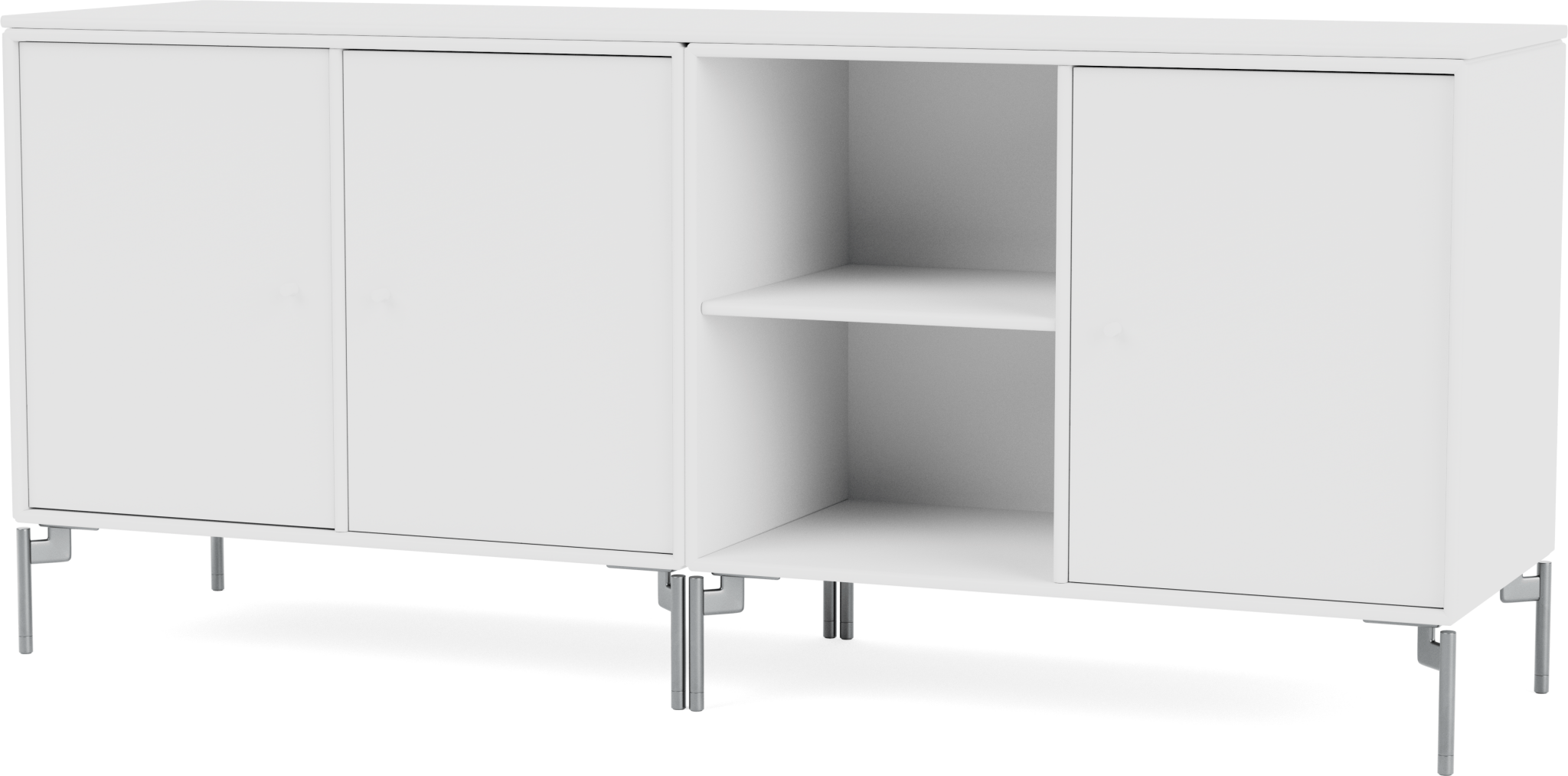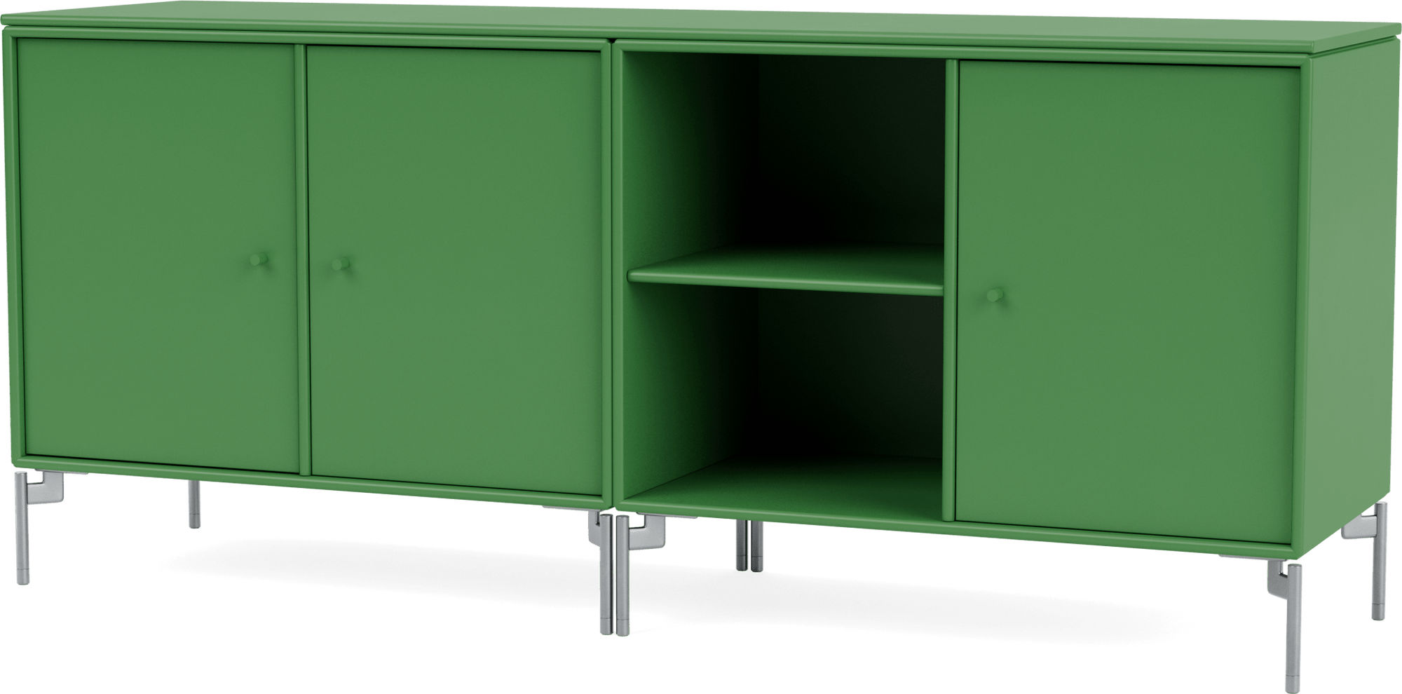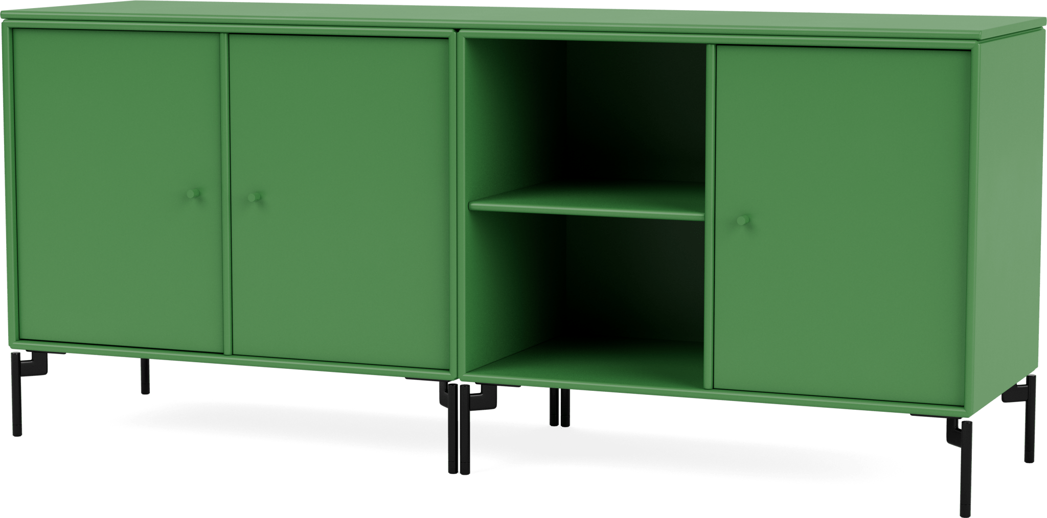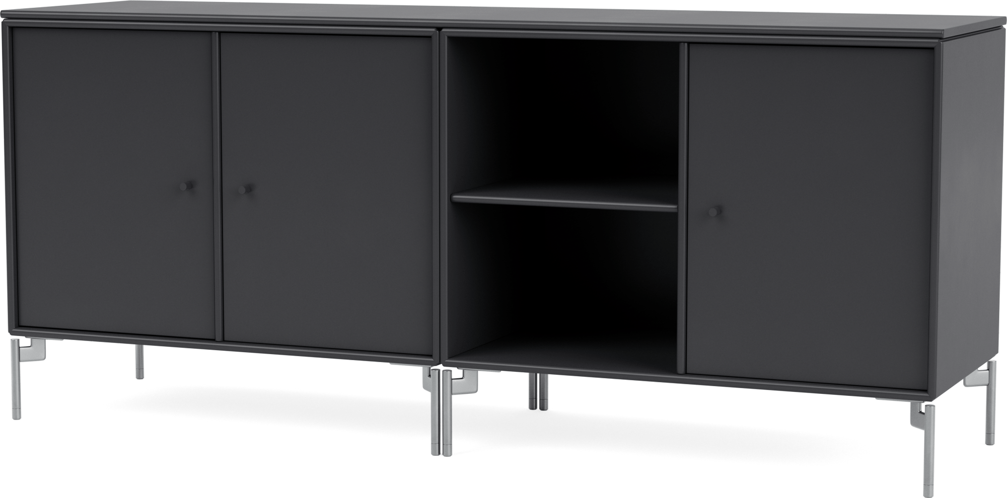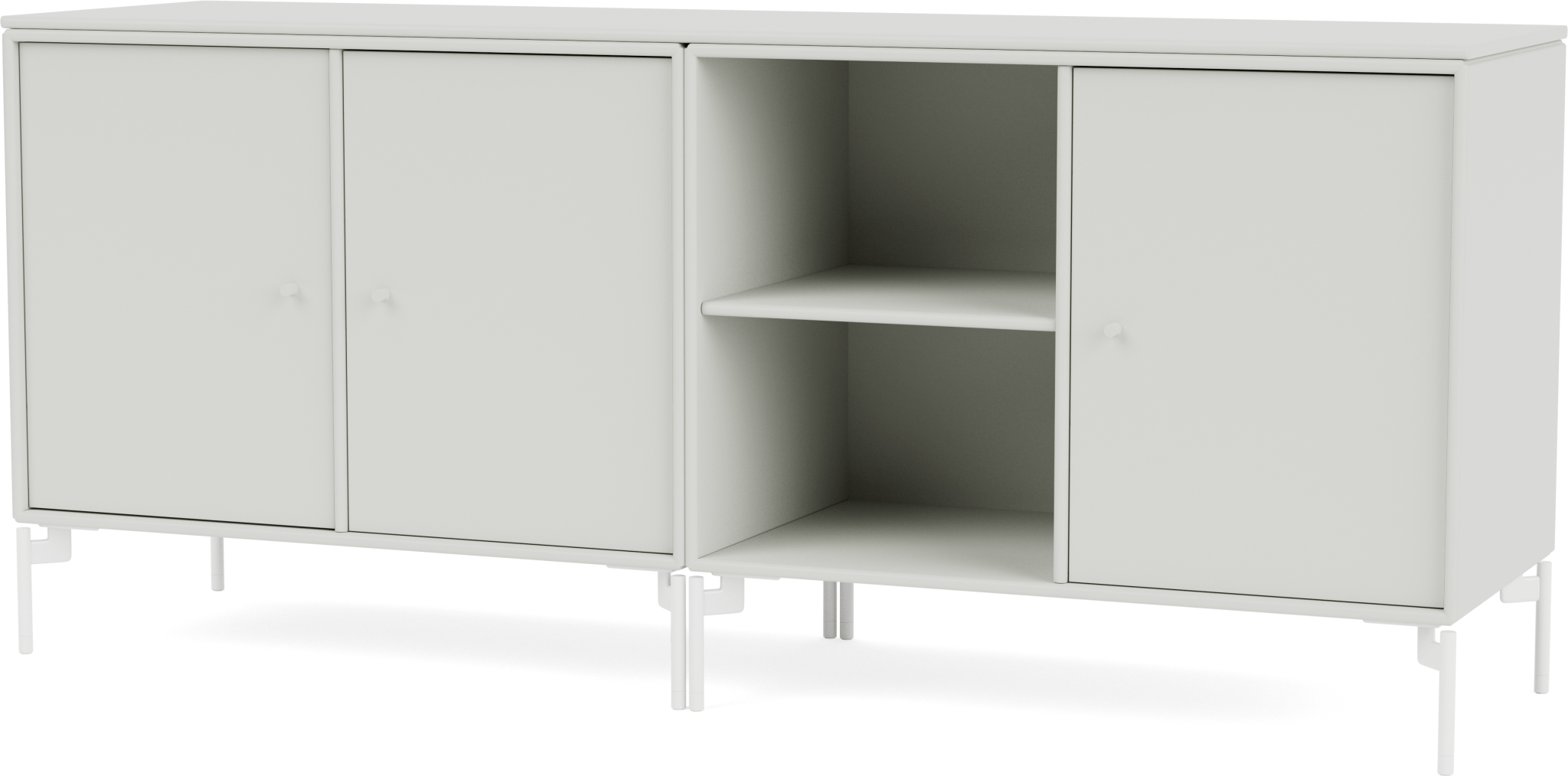 The Save Lowboard is the perfect addition to living room, bedroom, and office storage. Featuring three large cabinets and two open shelves, the Save Lowboard easily stores or displays everyday essentials. The clean and minimalistic aesthetic of the Save Lowboard allows it to effortlessly blend in with other design pieces, creating eclectic and styled shelving that appeals to all design sensibilities. The Save Lowboard is available as a wall mount or with legs or a plinth base, and can be finished in nine of Montana’s signature color lacquers. Pair the Save Lowboard with the Read Spacious Bookshelf and Workshop Work Desk for attractive and contemporary storage and workspace solutions.