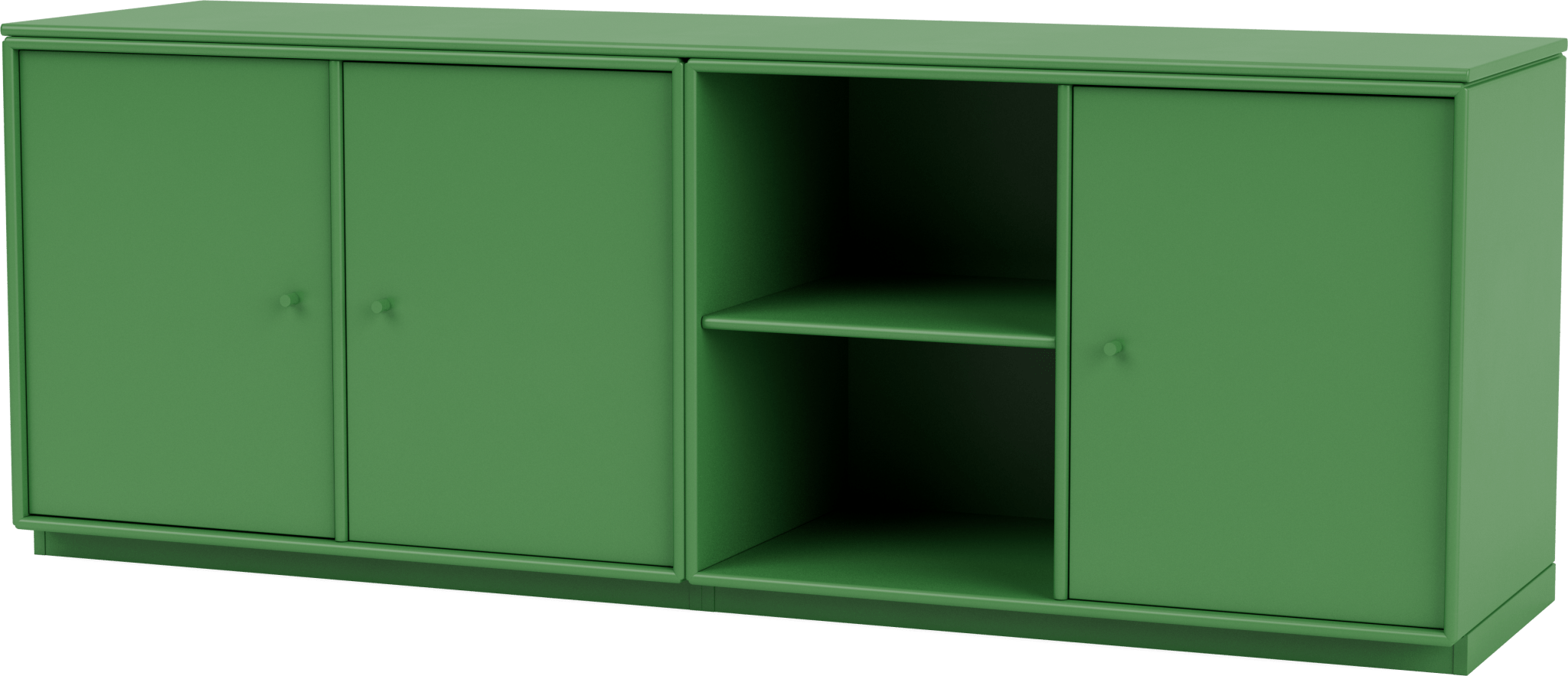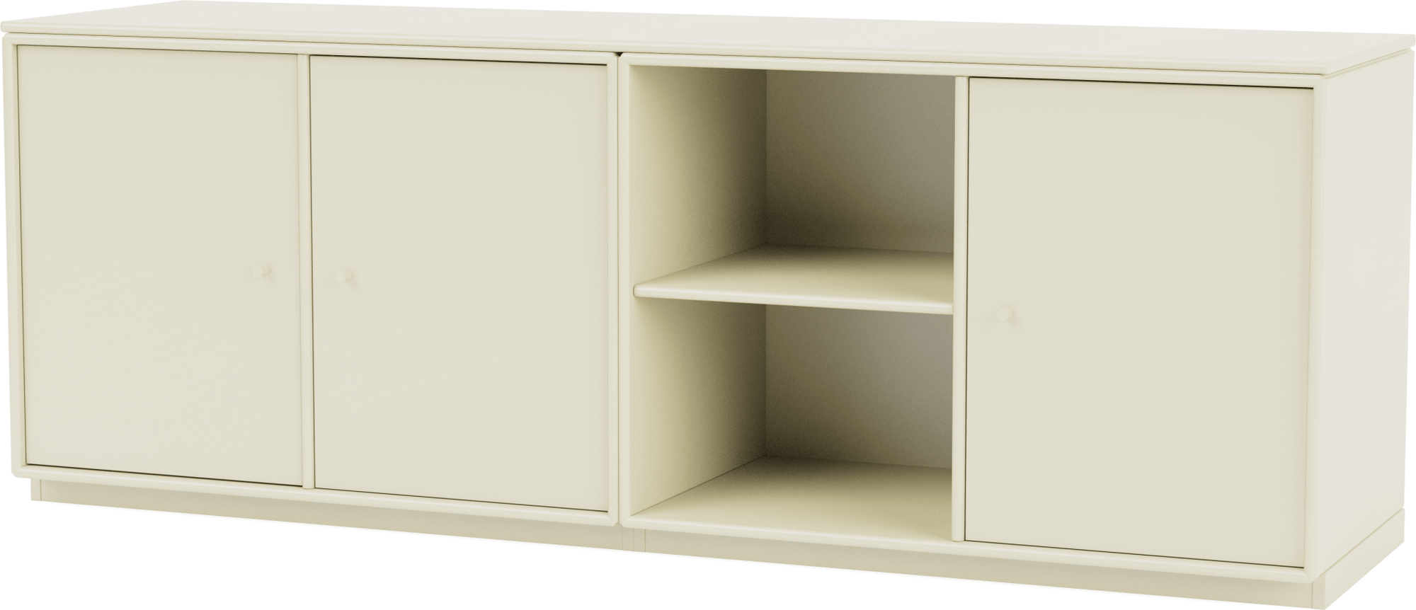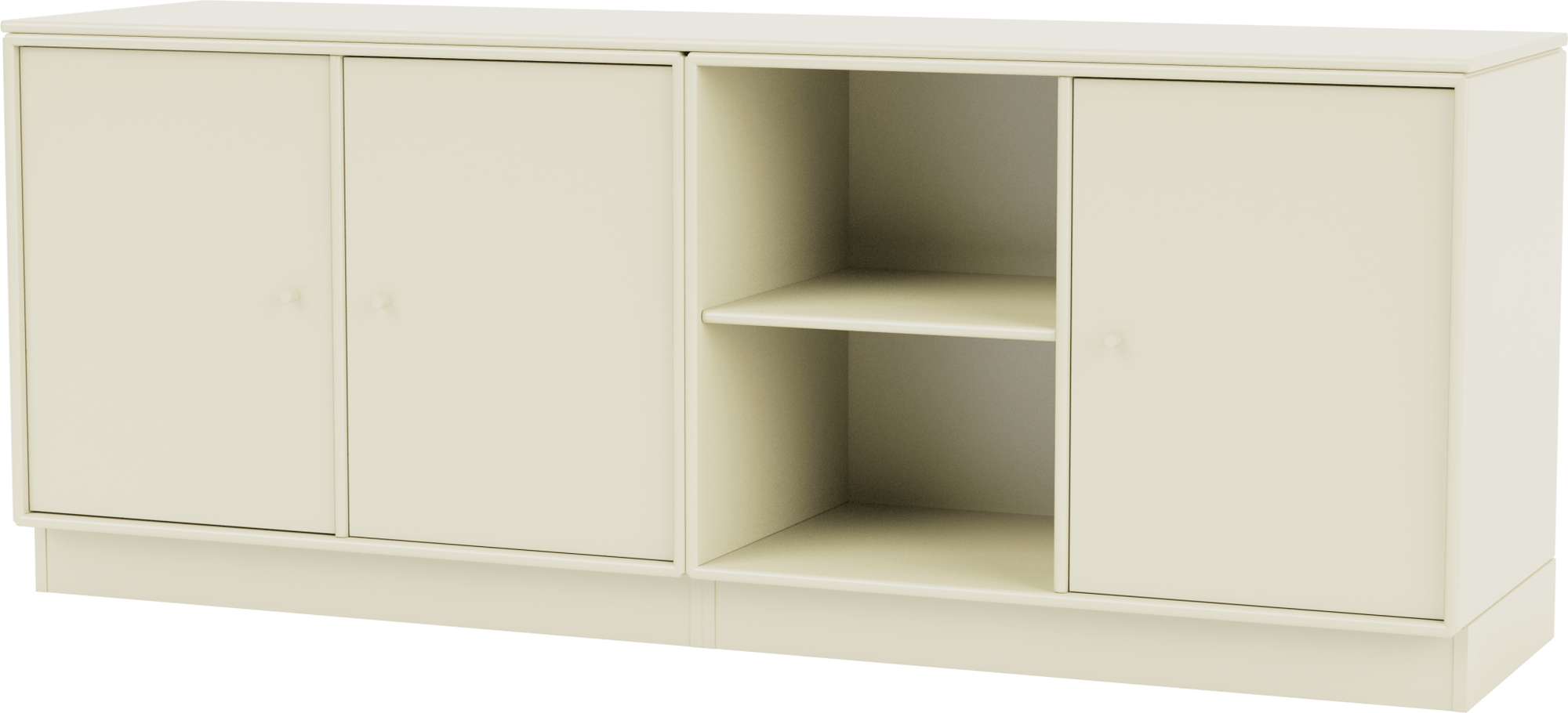 The Save Lowboard is the perfect addition to living room, bedroom, and office storage. Featuring three large cabinets and two open shelves, the Save Lowboard easily stores or displays everyday essentials. The clean and minimalistic aesthetic of the Save Lowboard allows it to effortlessly blend in with other design pieces, creating eclectic and styled shelving that appeals to all design sensibilities. The Save Lowboard is available as a wall mount or with legs or a plinth base, and can be finished in nine of Montana’s signature color lacquers. Pair the Save Lowboard with the Read Spacious Bookshelf and Workshop Work Desk for attractive and contemporary storage and workspace solutions.