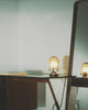 Designed by Space Copenhagen, the vintage elements of the Seine Table Lamp recall Mid-Century aesthetics, while the mouth-blown glass with a slight ripple effect establishes its timelessness for generations to come. To make this light more compact, the waterfall shade is simply balanced on the brass stand.