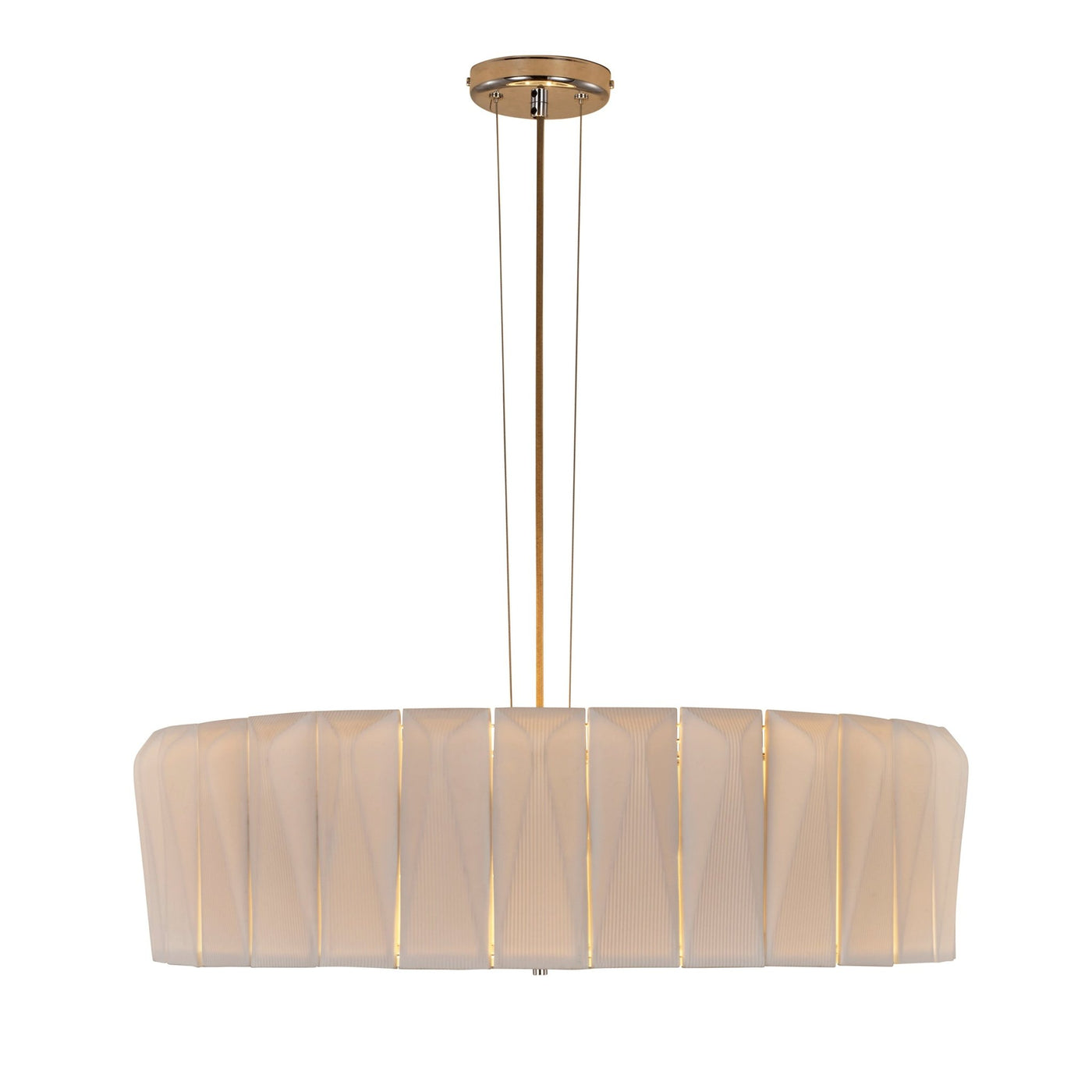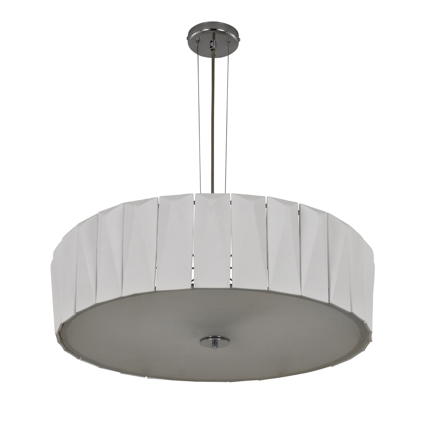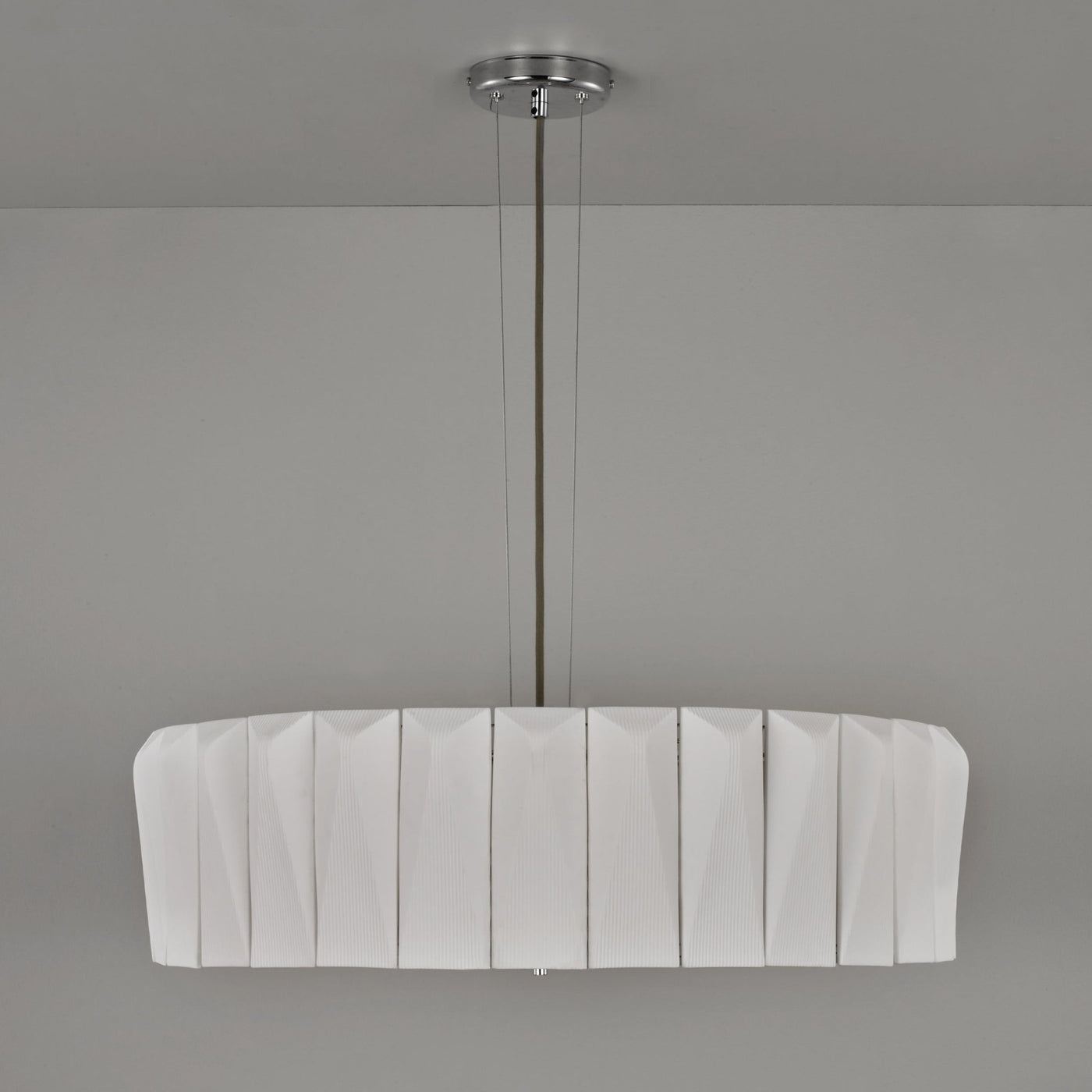 The generously sized Shard Chandelier is ideal for adding drama to living rooms, spacious hallways and lobbies alike. Designed as a central lighting source, the Shard 70 is made up of 30 handmade bone china tiles surrounding a suspended frosted glass disc. The three E26 bulbs cast their light onto and through the matt finish tiles, which emit a wonderfully ambient glow, while the glass disc provides a soft diffused light. Also available in a larger size.
