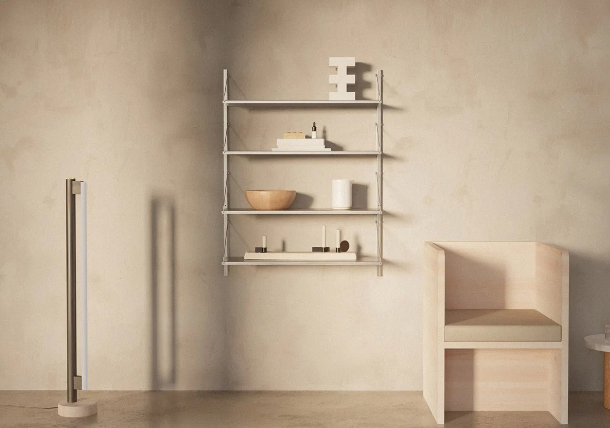 Shelf Library is a continuation of the recognised shelf design by Frama. Fastened with solid steel screws on stainless steel or oak rails, the shelves can easily be placed and re-styled in a variety of ways.