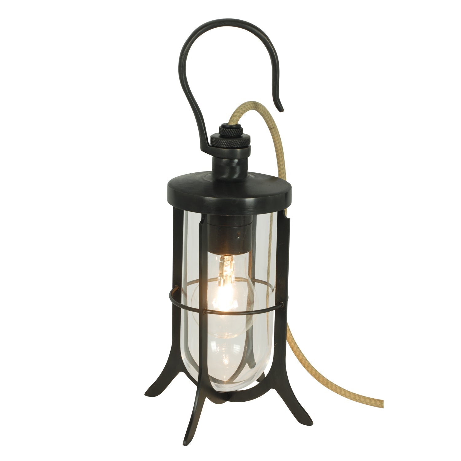 The Davey Lightning Ship's Hook Light blends heritage design with modern functionality. Originally crafted for ship decks, it features a solid brass body, clear glass shade, and a durable cotton-braided cord. Thanks to the integrated hook, you can hang it easily or rest it on flat surfaces. Whether placed beside a credenza, above a media console, or near a round coffee table, the Ship’s Hook Light offers flexible, elegant lighting.