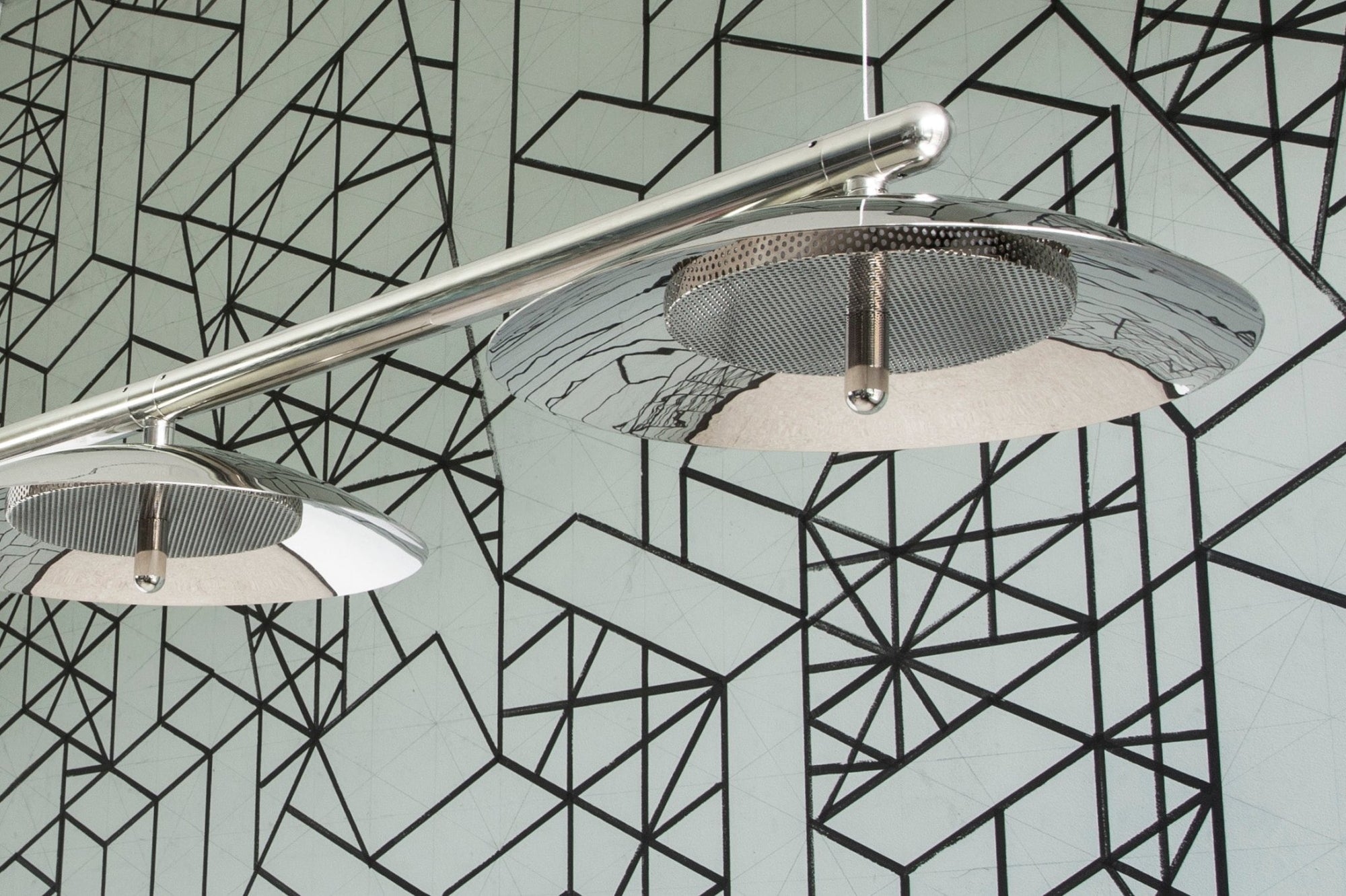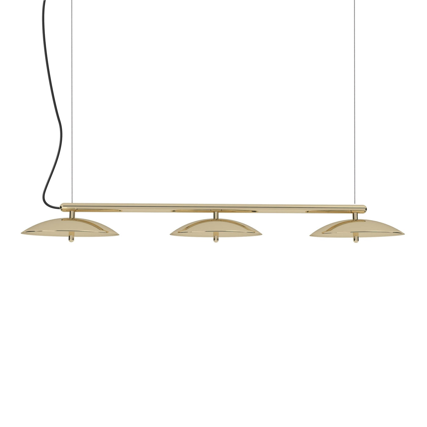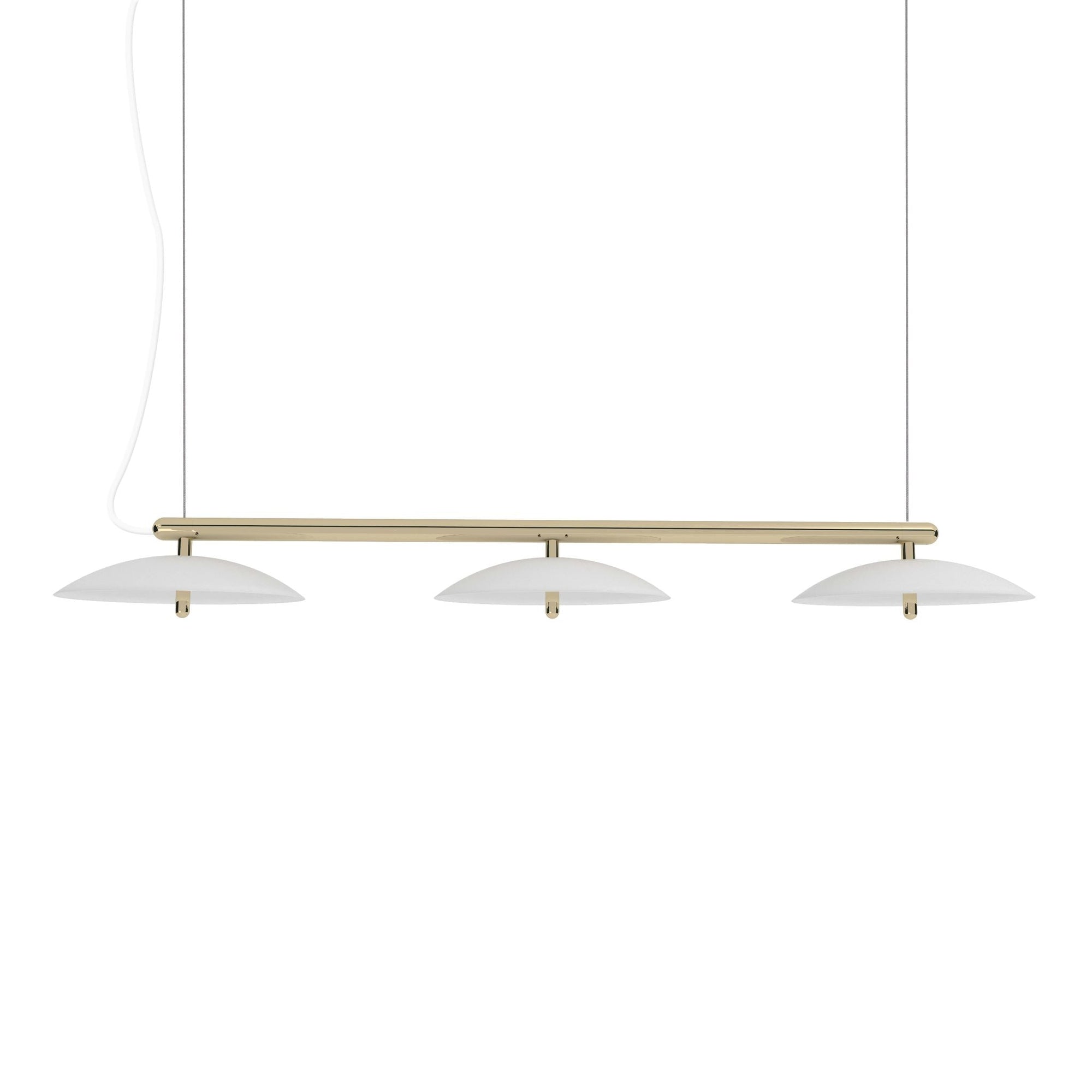 The Souda Signal Linear Pendant - 53" is a modern and sleek lighting solution, perfect for enhancing contemporary interiors. Featuring a polished metal arm that supports spun metal shades, this pendant creates a sophisticated and clean aesthetic. Additionally, its perforated diffusers ensure a soft, downward glow, making it ideal for spaces such as dining rooms or conference rooms. With customizable length options and a variety of finishes, the Souda Signal Linear Pendant - 53" offers both versatility and style, fitting seamlessly into different design schemes and elevating the space.