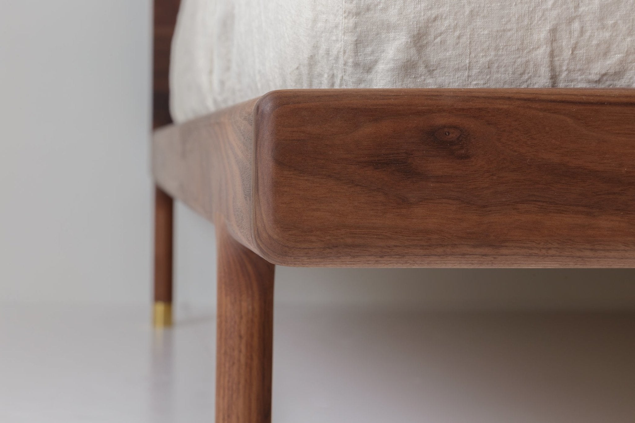 Designed for sustainability, the Simple Bed - Walnut uses eco-friendly materials. The solid walnut frame is finished with hemp seed oil, free of toxins such as VOCs, HAPS, and formaldehyde. Additionally, you can opt for a solid walnut headboard and brass machined feet. This ensures the Simple Bed - Walnut remains a durable, safe, and beautiful piece for years to come.