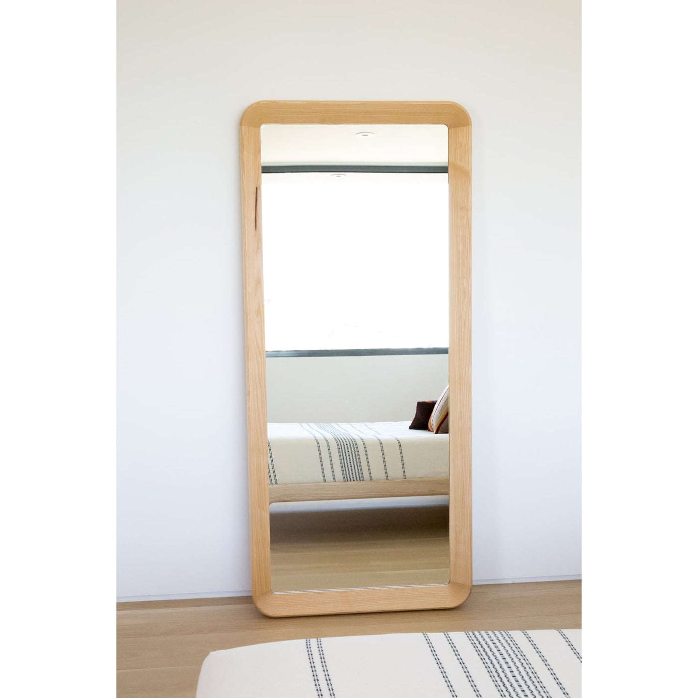 The Kalon Simple Mirror is a statement of minimalist elegance and sustainable craftsmanship. At six feet tall, it works as a freestanding piece or a wall-mounted mirror, adding versatility to any space. Crafted from solid American Ash or Black Walnut, its natural wood grain and softly rounded edges create a refined look. Whether in a bedroom, hallway, or alongside modern furniture, it enhances interiors with effortless style and warmth. Designed with both function and beauty in mind, the Kalon Simple Mirror features a durable Baltic Birch Plywood back panel. This structure provides stability while protecting the glass. Rear-mounted hardware allows for both vertical and horizontal hanging, making installation easy. Plus, the zero-VOC, HAPS-free, and formaldehyde-free hemp seed oil finish ensures a toxin-free presence. It pairs well with Scandinavian furniture, living room furniture, or a sleek media console for a cohesive, modern look. Kalon Studios has led the way in sustainable American design by combining contemporary craftsmanship with responsible sourcing. Founders Michaele Simmering and Johannes Pauwen focus on creating heirloom-quality pieces that stand the test of time. Every Kalon piece, including the Kalon Simple Mirror, reflects their dedication to quality and sustainability. Their work has earned international recognition, including the Green Good Design Award, proving their impact on modern furniture and eco-conscious design.