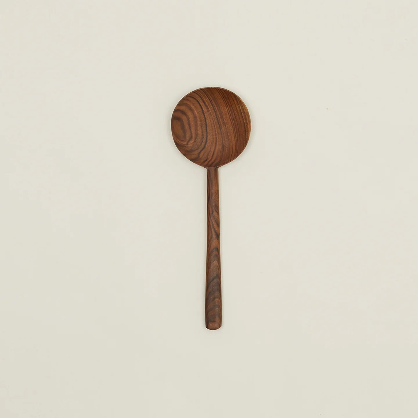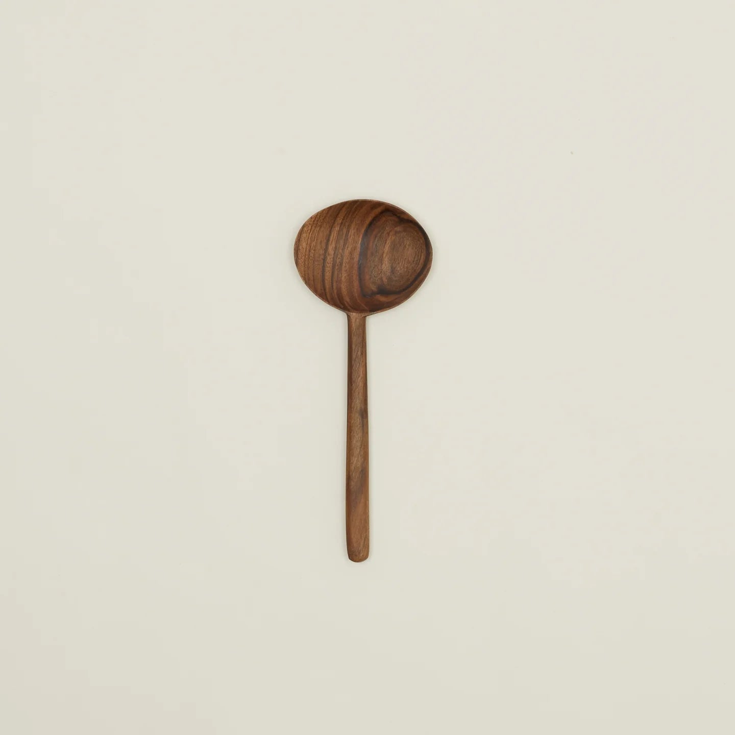 The Simple Walnut Spoon Collection is hand carved by artisans in Morocco. The nature of the wood and variations in execution make each piece solely unique. The darker wood stains less, patinas over time, and will be your ‘go-to’ serving and cooking tools.
