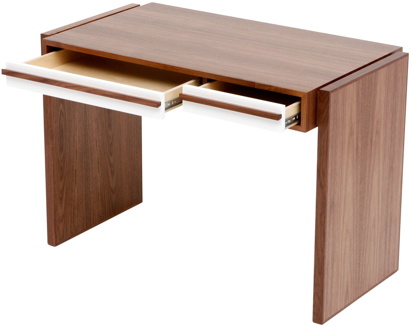 The Artless Single Unit Writing Desk offers a smart, space-saving solution for modern living. Its slim walnut veneer frame, accented with solid wood edges, feels sleek yet grounded. With two wide pencil drawers, it keeps your workspace tidy without sacrificing style. Whether you're working from home or journaling in a quiet corner, the Single Unit Writing Desk helps you stay organized and inspired.