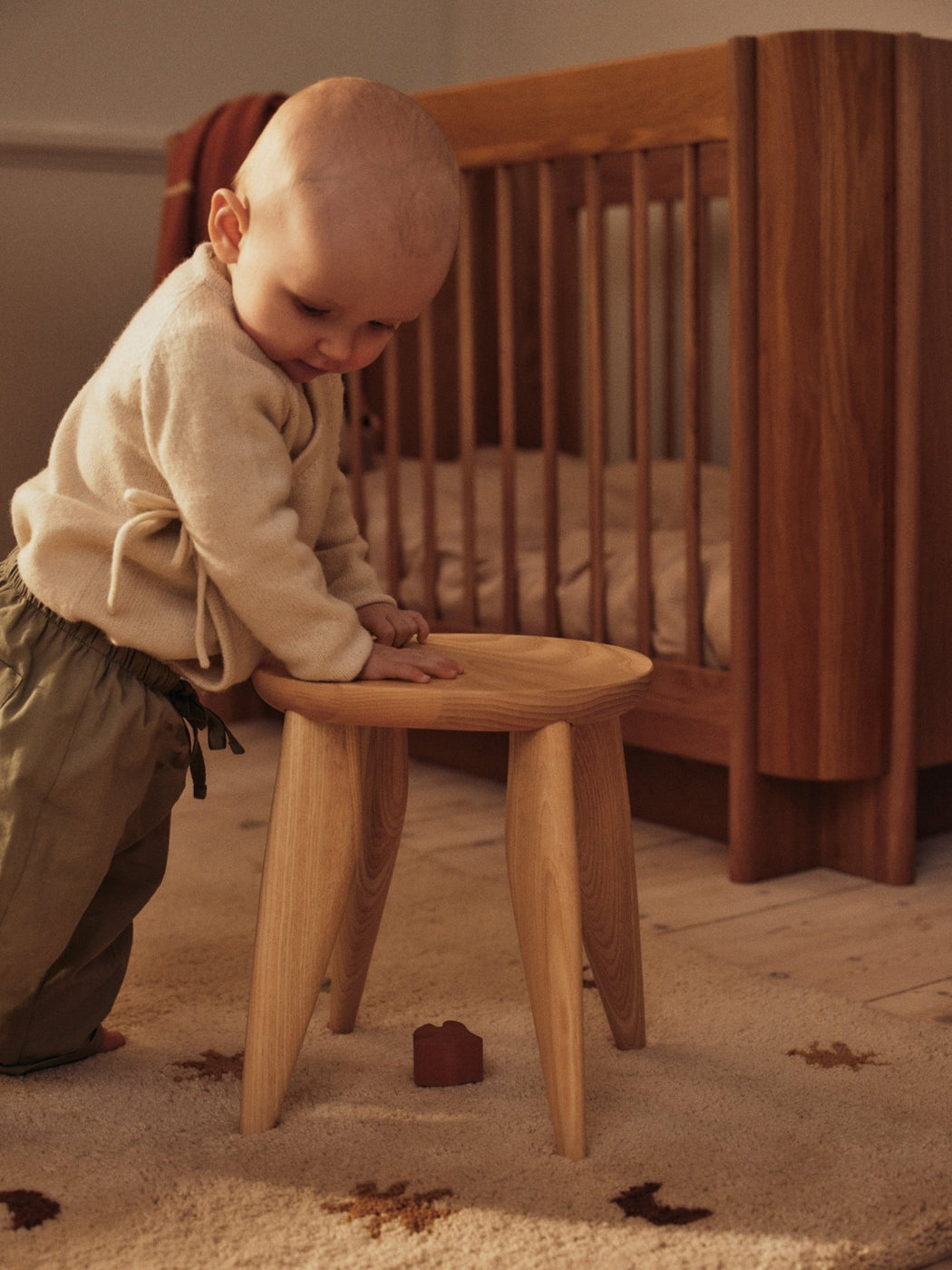 Create an inspiring atmosphere in your child’s room with the hand-tufted Skye Rug, crafted from pure New Zealand wool. Its earthy tones and scattered moons, stars, and dots create a calm visual rhythm, while the soft wool texture offers a cosy spot to play, read, and rest.